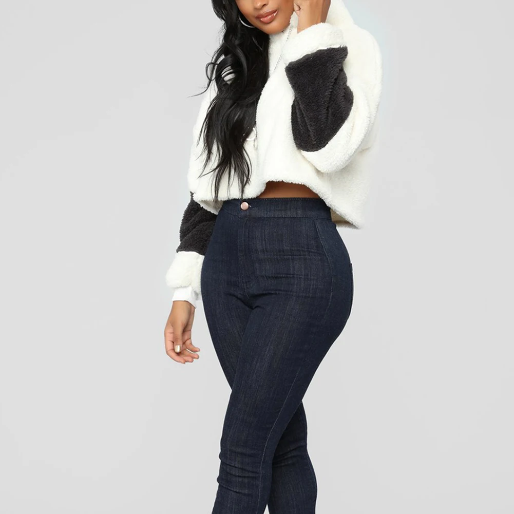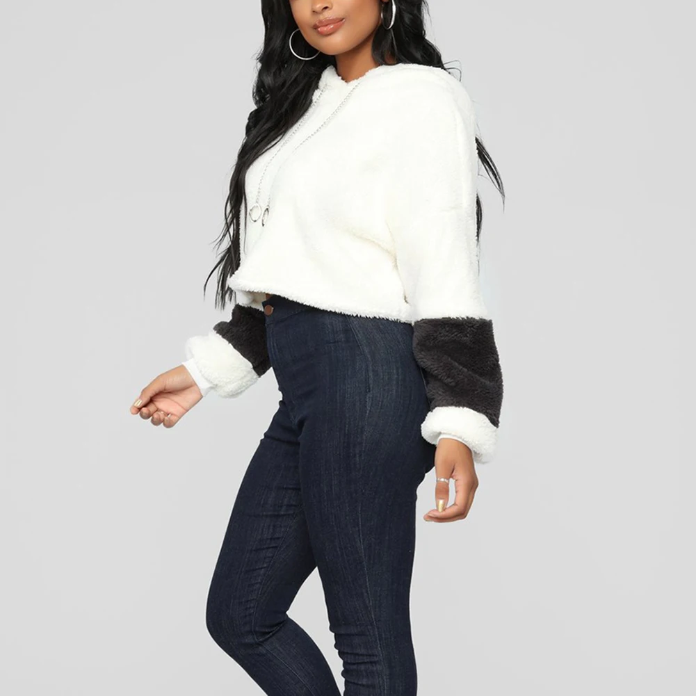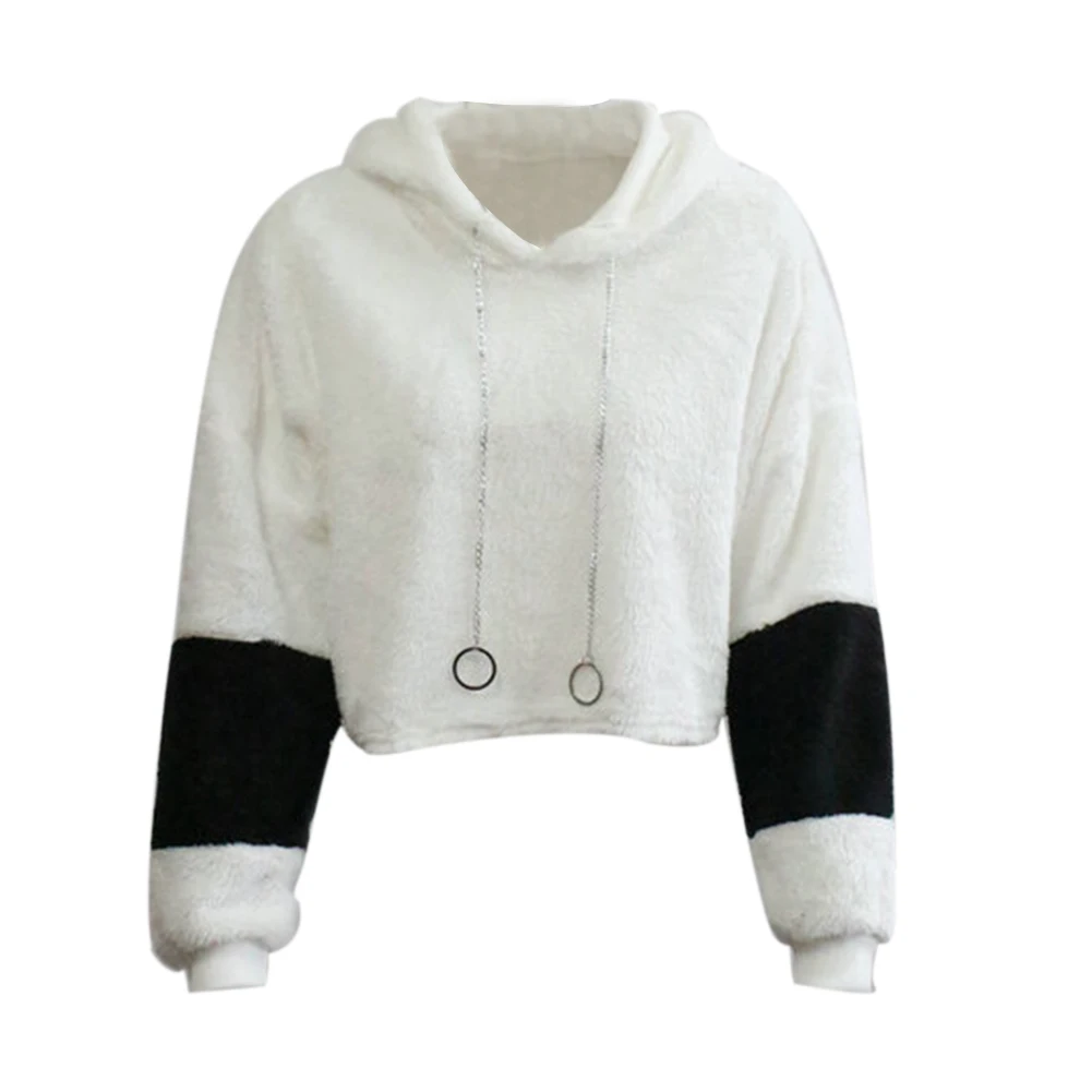 Сплайсинга цепи с капюшоном с длинным рукавом женская повседневная Короткая Толстовка Пуловер укороченный топ