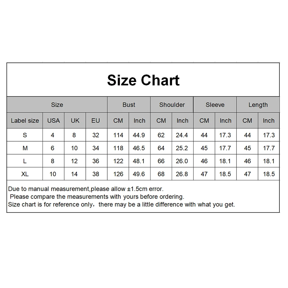 [Наш Размер S] Длина: 44 см/17,3 ", обхват груди: 114 см/44,9", плечо: 62 см/24,4 ", рукав: 44 см/17,3" (прибл.)