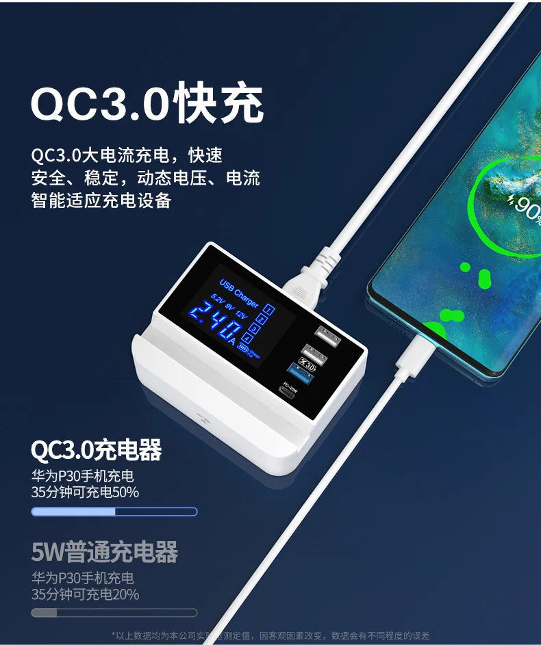 Multi USB зарядное устройство с 4 портами PD QC3.0 Адаптер HUB LED дисплей Мобильный Телефон - купить