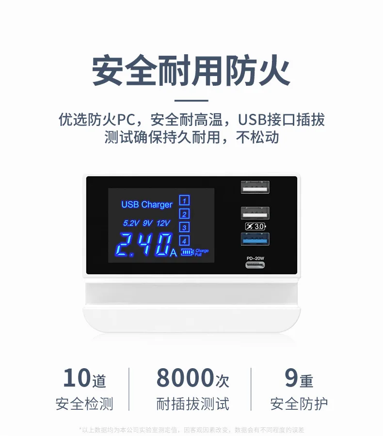 3. Выразительный светодиодный экран для отображения состояния зарядки каждого порта USB!
