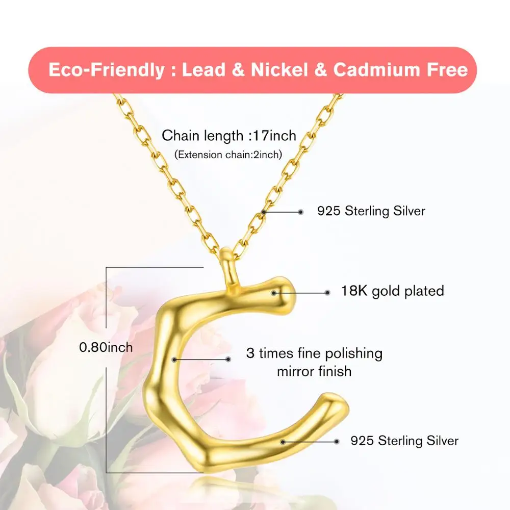 LicLiz новинка простое ожерелье с надписью C серебро 925 пробы Золотая подвеска для - купить