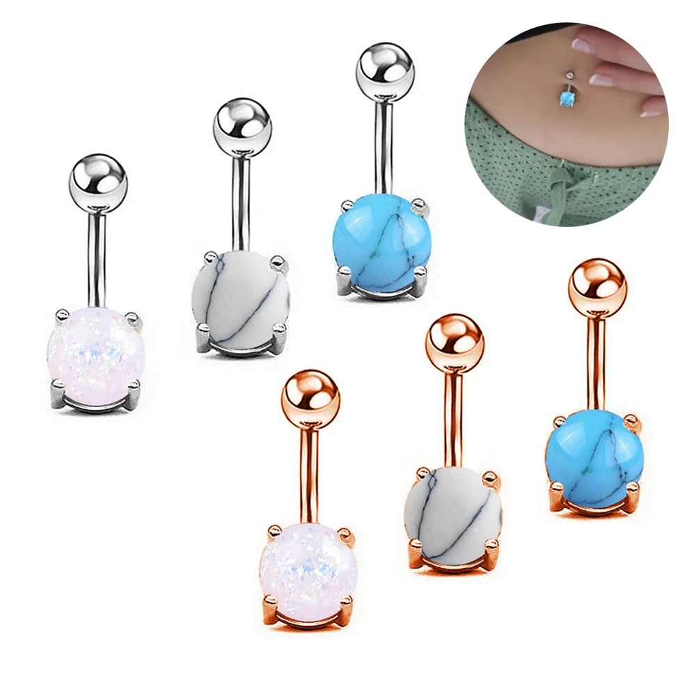 1 шт. Роскошные Имитация опала болтаются пупка Кольца пирсинг тела пупок бар 14 г - купить