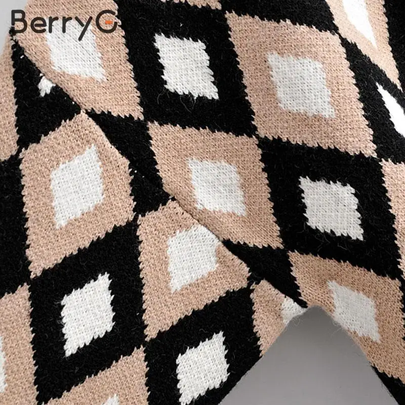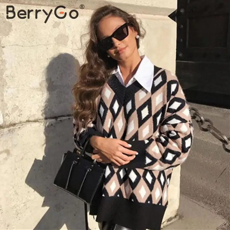 Купить BerryGo винтажный клетчатый свитер с v-образным вырезом пуловер для женщин уличная