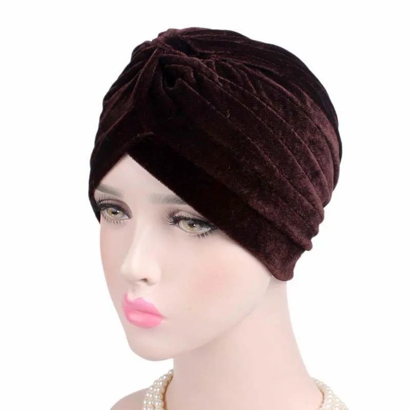 Модная Повседневная Эластичная Золотая Бархатная шляпа тюрбан для головы женская мусульманская Кепка Chemo
