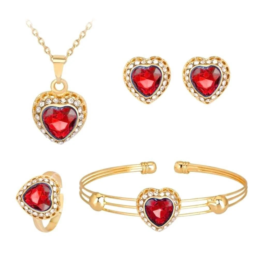 Этот ювелирный набор имеет кулон в виде сердца и стразы, довольно романтичный и элегантный.