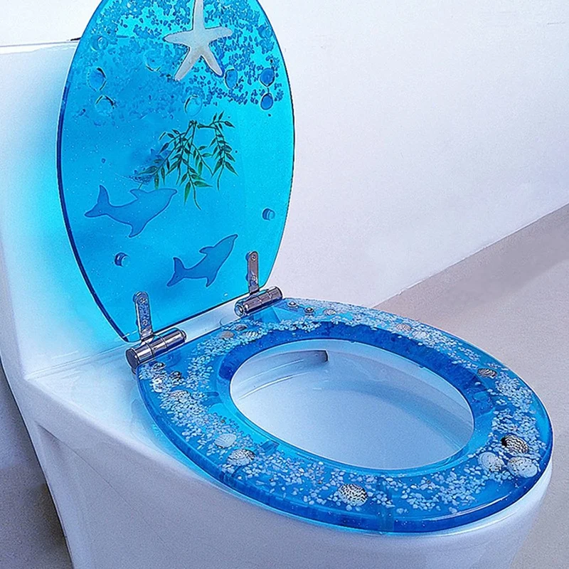 Художественное закрытое резиновое сиденье для унитаза с крышкой, 3D-эффекты, сверхмощная крышка для унитаза с дельфином, морской звездой, настоящими ракушками и песком типа S