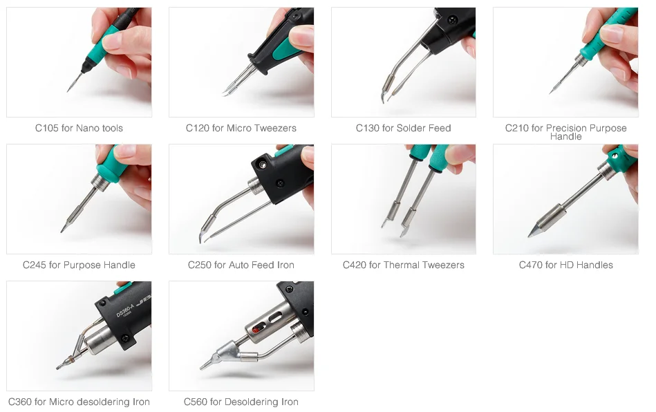 Они подходят для общих целей пайки, и они идеально подходят как для SMD компонентов, так и для применения с высокими требованиями к мощности, такими как пайка наземного самолета.