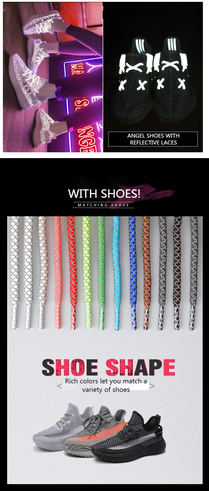 Отзывы о Светоотражающие кроссовки со шнурками шнурки 1 пара круглые спортивные для обуви