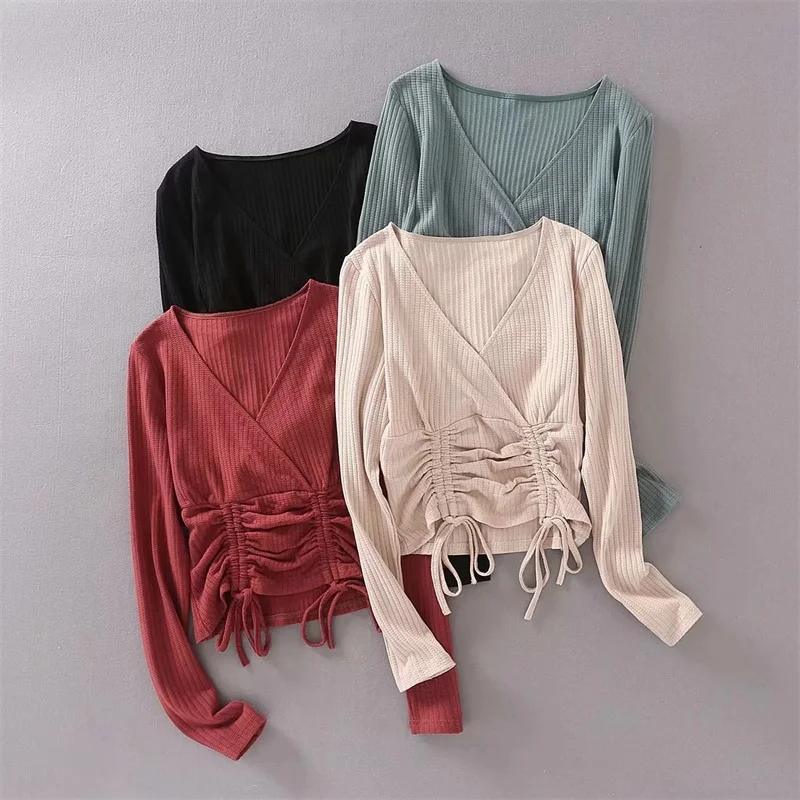 Отзывы о Женский топ с V-образным вырезом и длинным рукавом Женская одежда