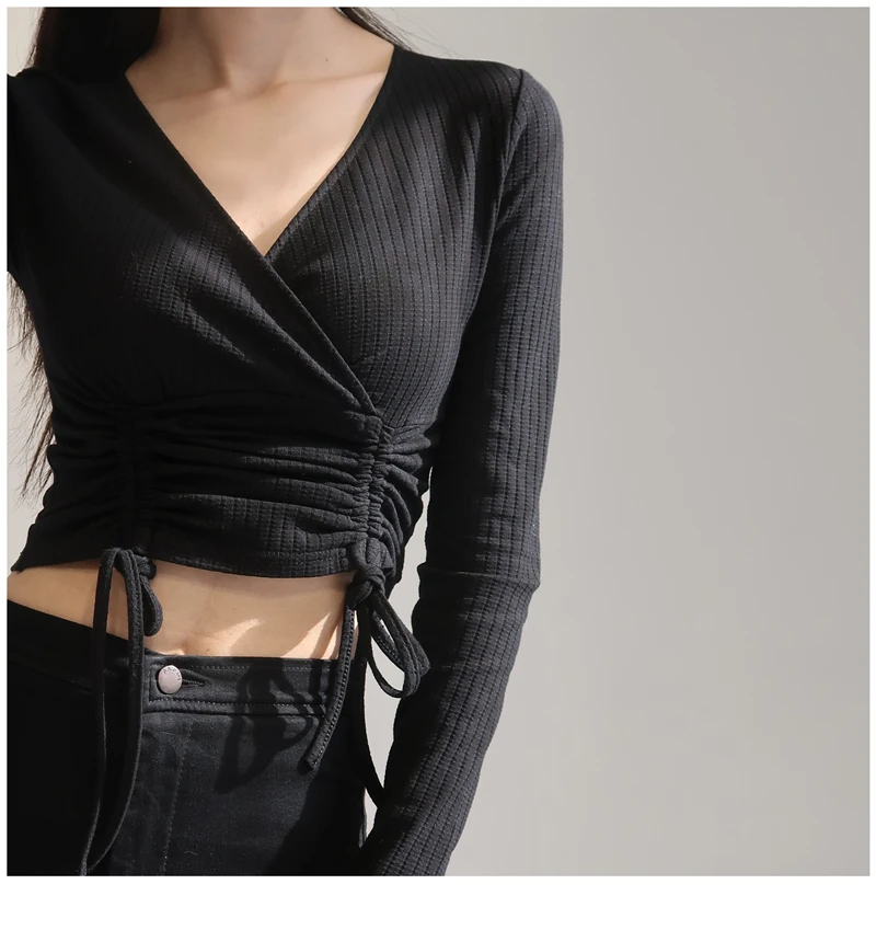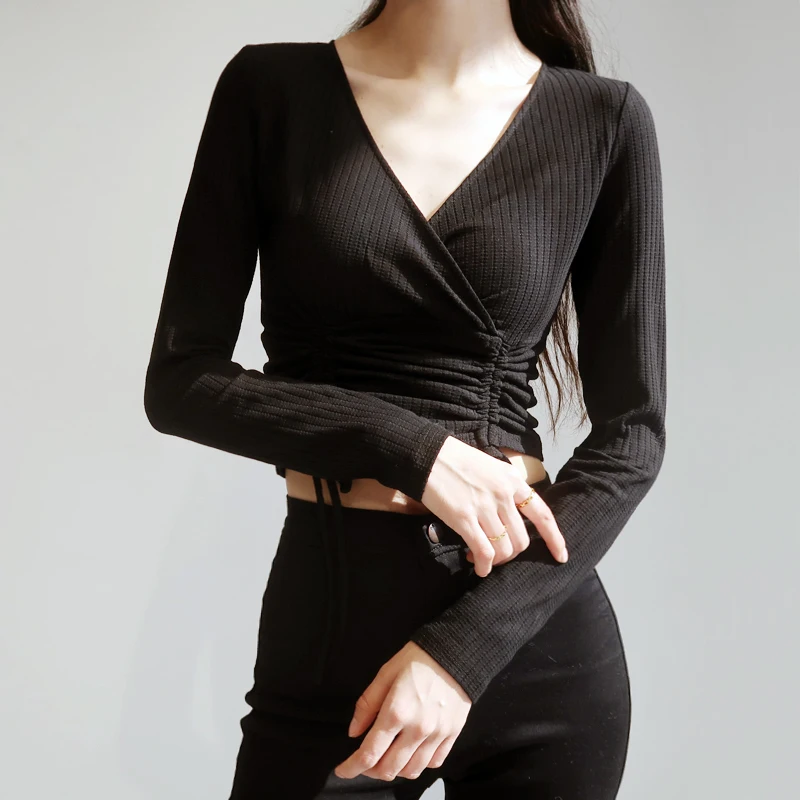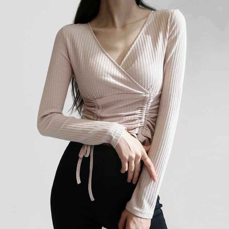 Купить Женский топ с V-образным вырезом и длинным рукавом | Женская одежда