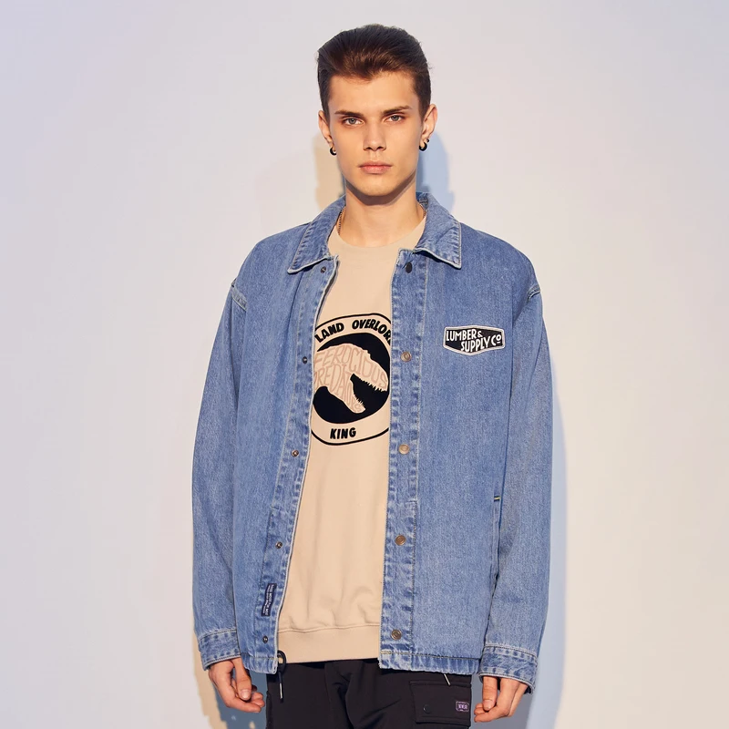 Metersbonwe denim jacket men's retro casual lapel long sleeve bomber Мужская одежда - купить