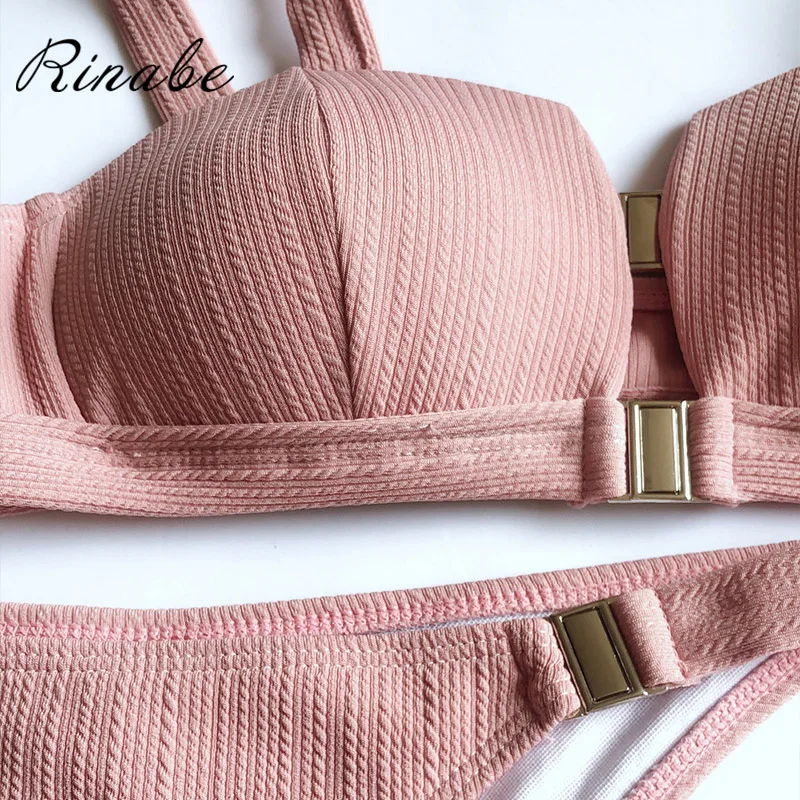 Бикини пуш-ап с глубоким v-образным вырезом Одноцветный купальник женский - купить