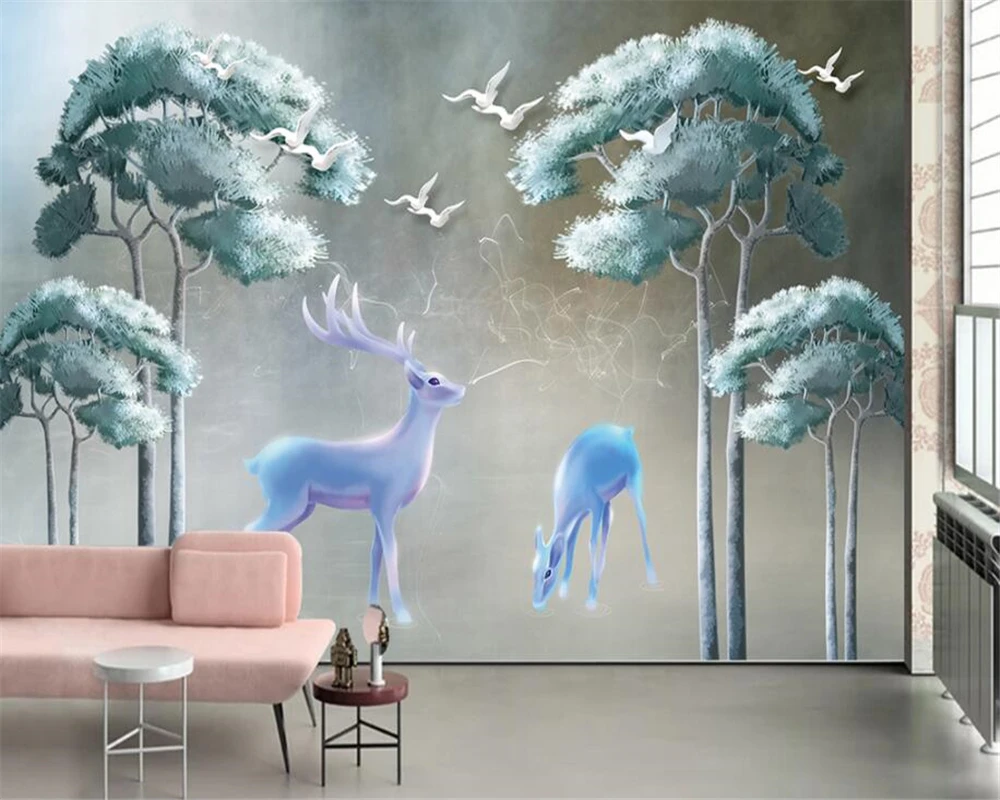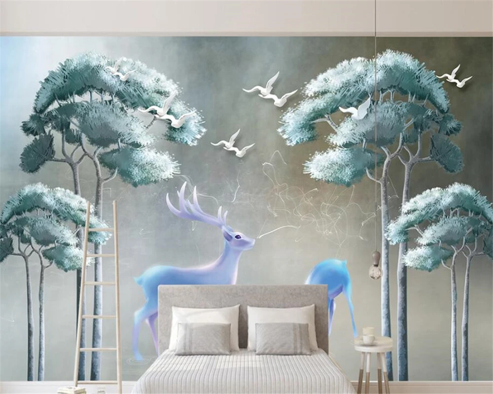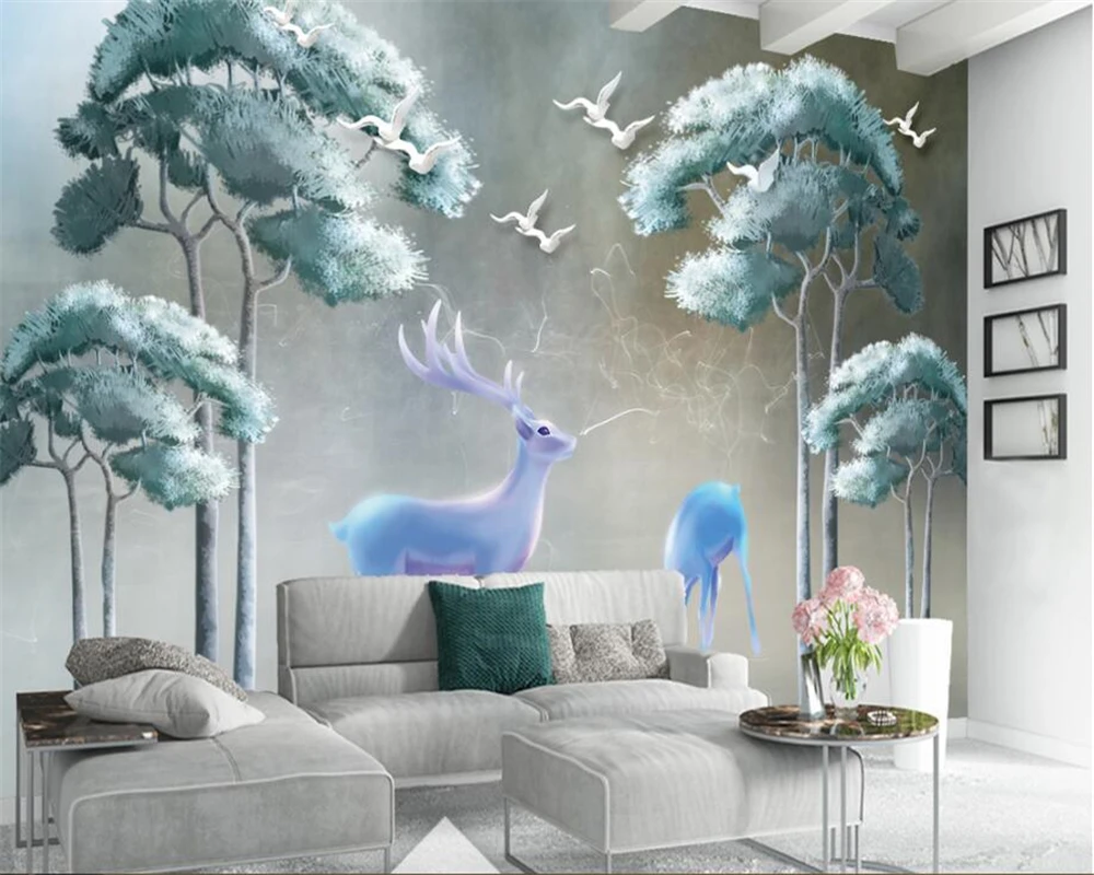 Diantu обои современные HD бледно-голубые гинкго дерево Лось фон для телевизора - купить