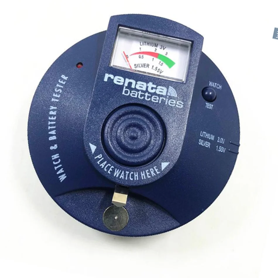 Во-первых, прибор для проверки часов Функция: подходит для тестирования аналогового сигнала кварцевые часы Его практическая особенность заключается в том, чтобы помочь вам проверить, прежде чем открыть крышку часов, независимо от того, нужно ли это остановить движение, но на самом деле нужно изменить аналоговый сигнал батареи кварцевые часы, или ядро, которое препятствует механическому отказу в ремонте двигателя, необходимо отремонтировать, Вместо изменения индикации батареи; Пожалуйста, перейдите следующим образом: 1. Убедитесь, что часы не показывают никаких очевидных механических повреждений; 2. Поместите часы в тестовую область в центре прибора, затем нажмите кнопку «Тест часов» в правом верхнем углу, чтобы запустить инструмент; 3. Если прибор получает электронный импульсный сигнал, зеленый светильник на приборе будет ритмично гореть, сопровождается звуковым сигналом; Если это старые часы, сигнал будет один раз в секунду. Если это новая таблица, сигнал почти один раз в минуту; Если тестер реагирует на пульс, батарея не имеет никаких проблем, но механический сбой, тогда он нуждается в профессиональном ремонте; 4. Если тестер не издает звук или не включен светильник, часы могут быть полностью сломаны и должны быть заменены; 5. Для поддержания заряда батареи тестер автоматически отключится через 2 минуты без ручного отключения; Этот тестер также полезен для того, чтобы не запускать часы после замены аккумулятора. Если тестер не ответит после нажатия кнопки «Проверка часов», он может быть не в хорошем контакте. Выньте его и повторно вставьте аккумулятор или слегка поверните; Если движение испускает пульс и указатель часов не двигается, часы должны быть отремонтированы; Во-вторых, функция тестирования батареи 1. Выберите тип элемента питания (1,55 v для оксида серебра или 3,0 v литиевая батарея), одной и той же позиции для 1,55 v Щелочная батарейка-кнопка подходит для использования; 2. Поместите положительный электрод батареи вниз в тестовую область и нажмите контактную пружину, чтобы связаться с батареей отрицательным. 3. Указатель счетчика должен быть в зеленой зоне; 4. Если указатель не может указывать на зеленую область и аккумулятор низкий, его следует заменить; Важно: контактные точки аккумулятора или тестера не чистятся, что может привести к неточным результатам испытаний; Основная информация о товаре: 1. Функции батареи и прибор для проверки часов независимы друг от друга и могут быть выполнены одновременно; 2. В отличие от схемы функции тестирования часов, функция тестирования батареи не требует внутренней цепи; Она может быть внутри тестера. CR2430 также может быть использован после того, как он был использован; 3. Чтобы избежать неправильных результатов испытаний часов, держите подальше от или закройте рядом магнитное оборудование, например, мониторы, электронные двигатели и т. д.; Обслуживание и замена батареи; Часы и тестер батареи Renata BWT94 не требуют особого ухода. Площадь дисплея и точка тестирования батареи должны быть чистыми. Его можно очистить спиртом и мягкой тканью, чтобы избежать других растворов с растворимыми свойствами. Если прибор для проверки часов не работает, батарея внутри может быть заменена; 1. Аккуратно откройте заднюю крышку аккумулятора тестера; 2. Наклоните старый аккумулятор внутри; 3. Вставьте Новый ак
