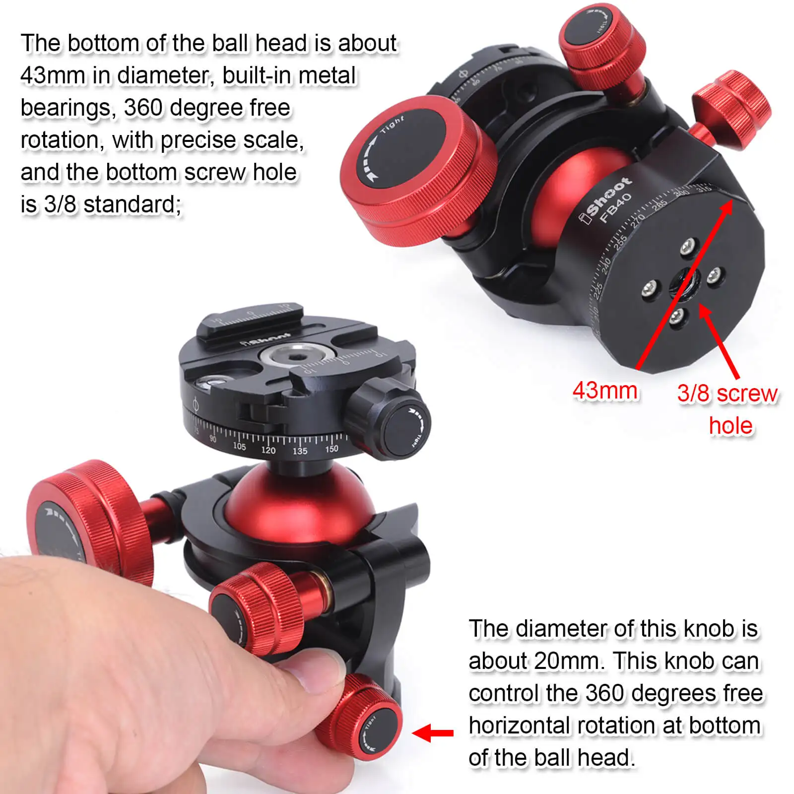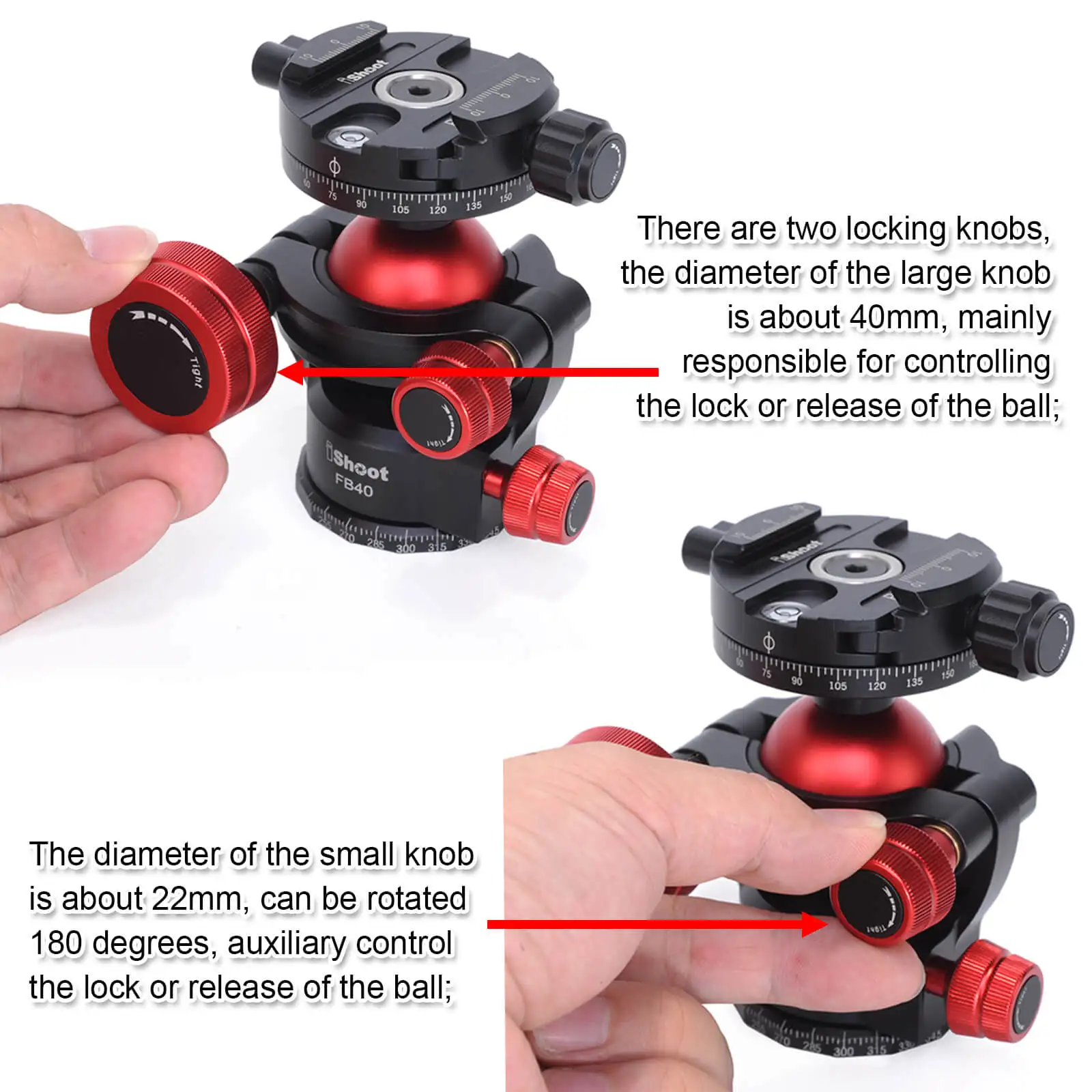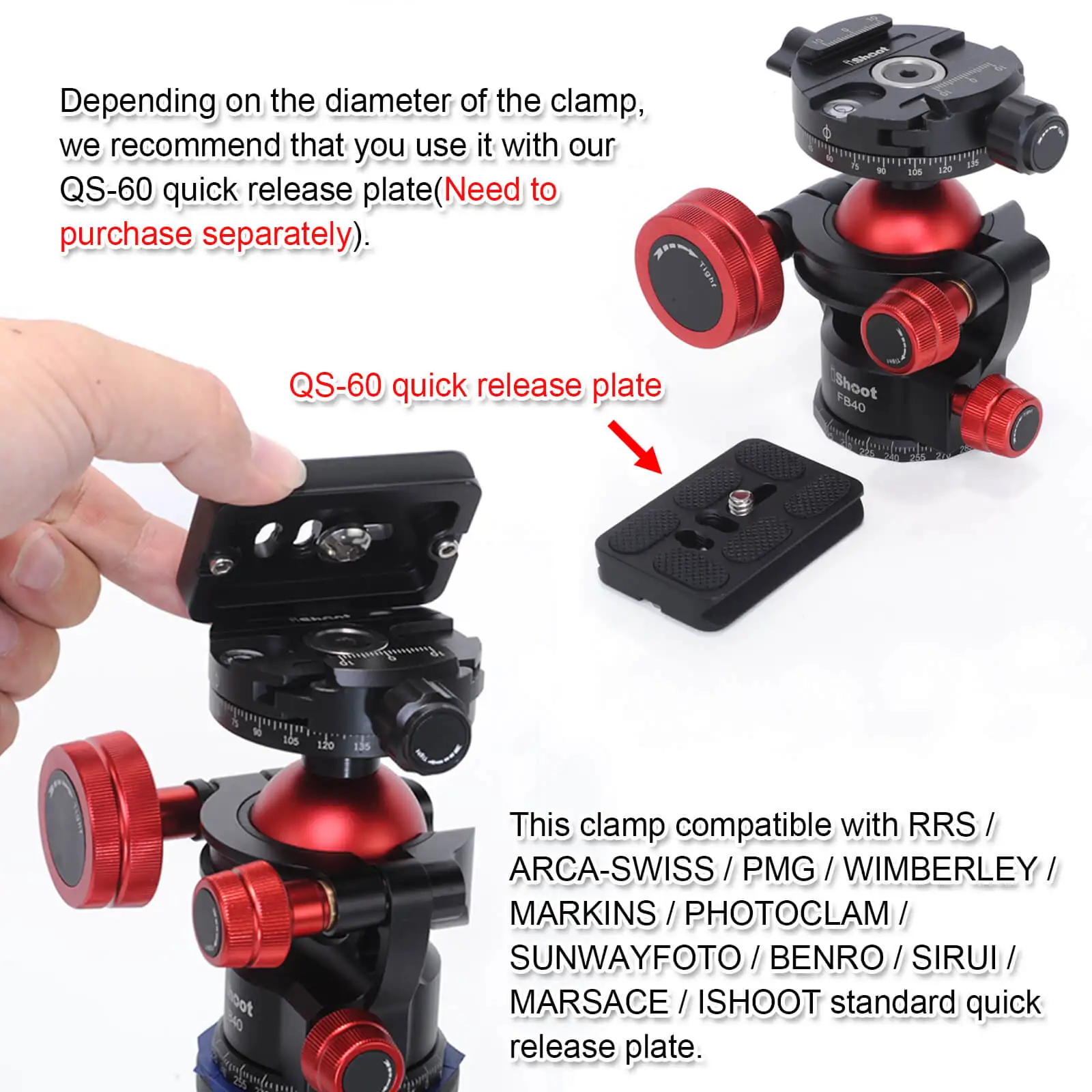 IShoot на станке с шариковой головкой IS-FB40QJ58 Низкий центр тяжести и высокая сила блокировки С зажимом сверху и панорамным основанием внизу Совместим с RRS / Arca-Swiss, БЫСТРОРАЗЪЕМНАЯ пластина Вращение на 360 градусов, водонепроницаемый, пыленепроницаемый и простой в обслуживании |