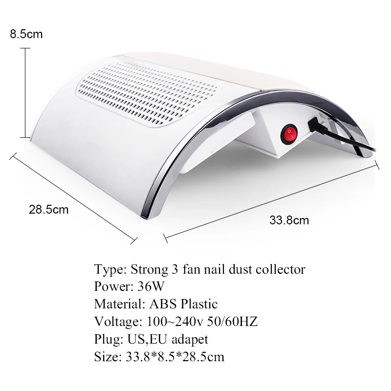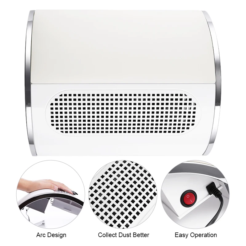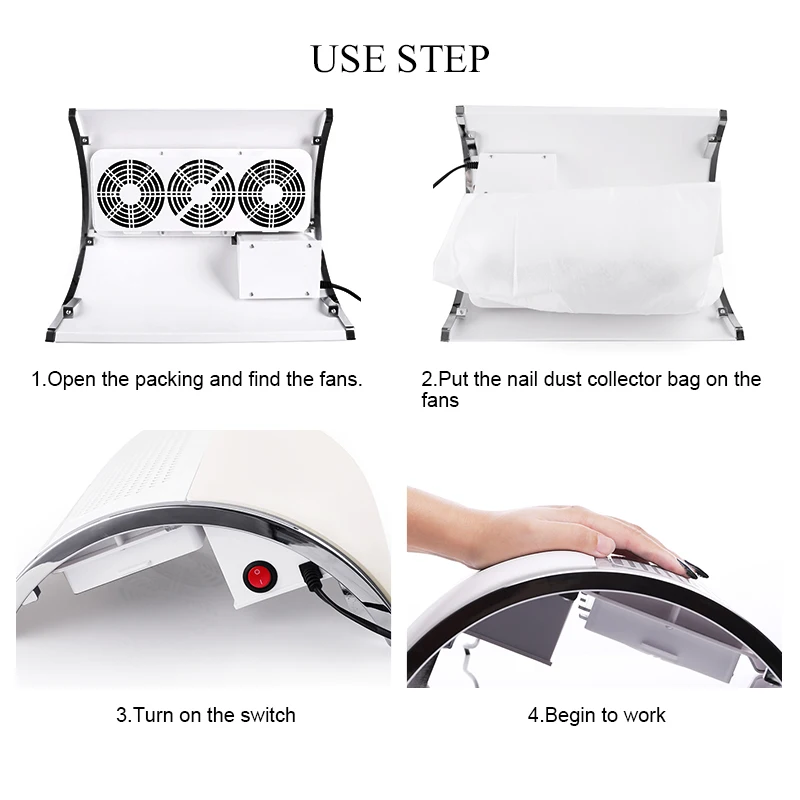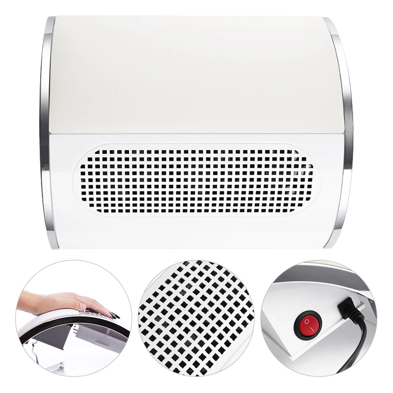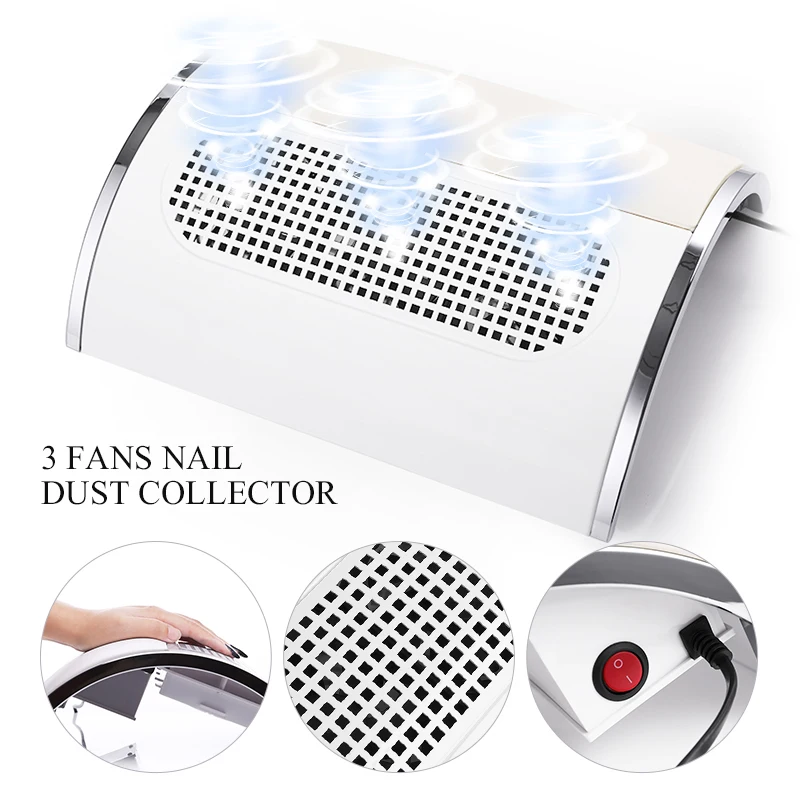 3 вентилятора, мощный ветер, собирает пыль во время подачи или полировки ногтей.