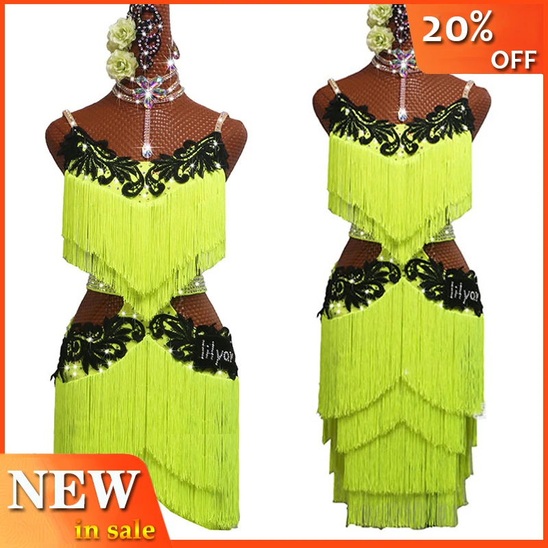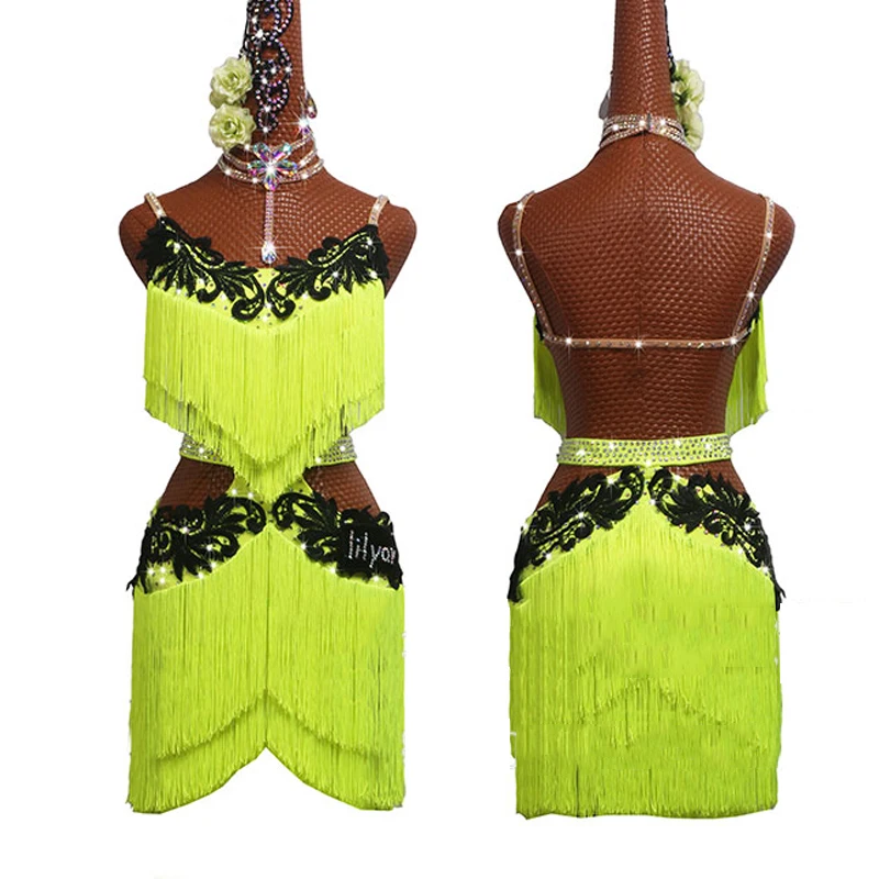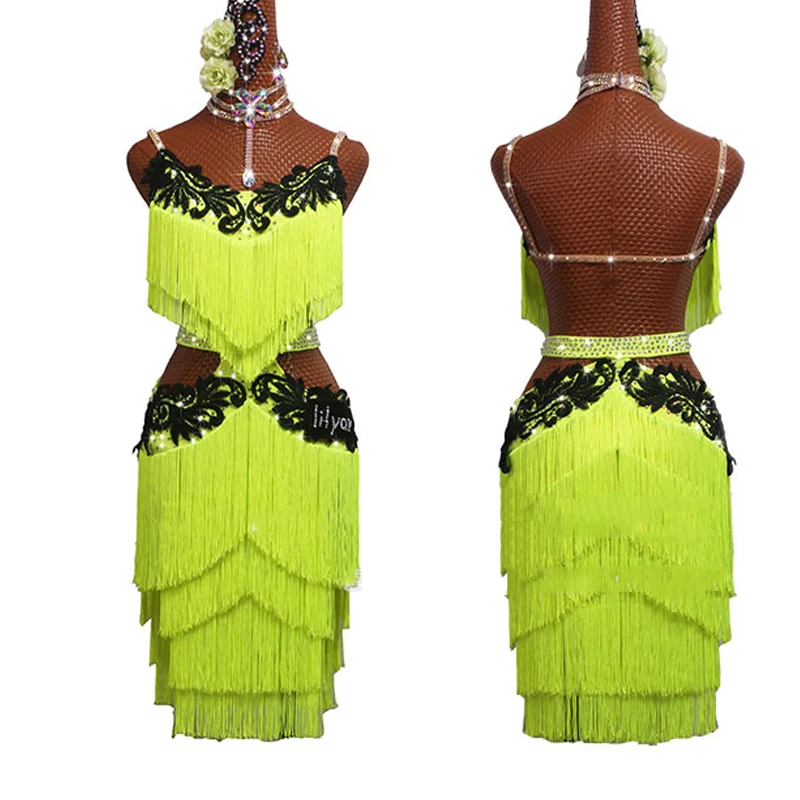 Купить Платье женское ФЛУОРЕСЦЕНТНОЕ для латинских танцев BL3004 юбка с бахромой |