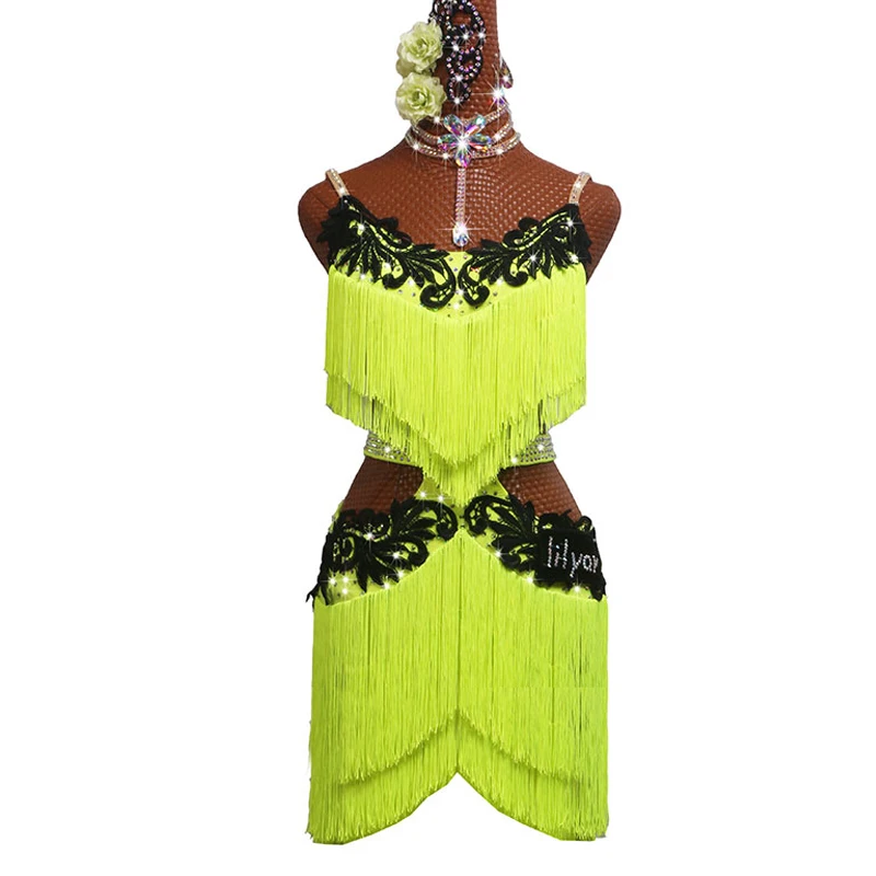 Платье женское ФЛУОРЕСЦЕНТНОЕ для латинских танцев BL3004 юбка с бахромой - купить