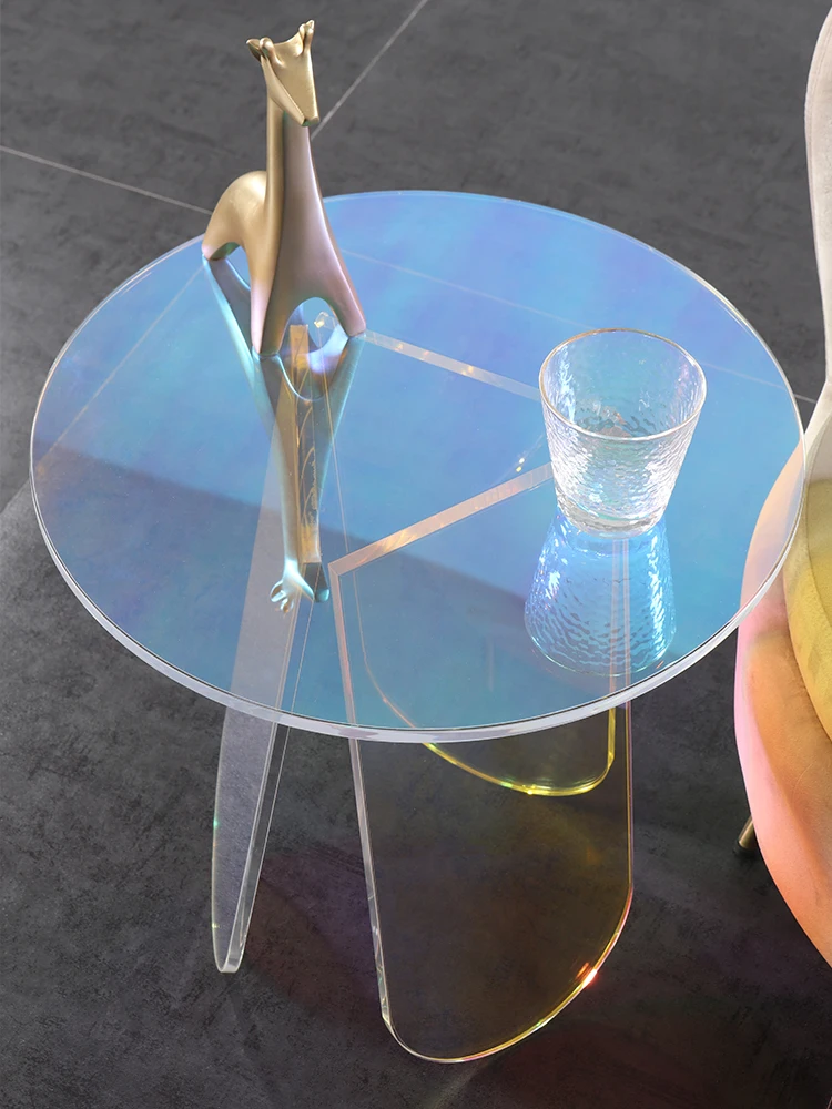 Скандинавский цветной стеклянный акриловый кофейный столик, прозрачный столик, дизайнерский круглый Сказочный угловой столик для дивана