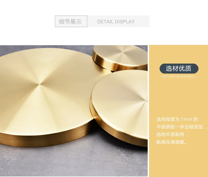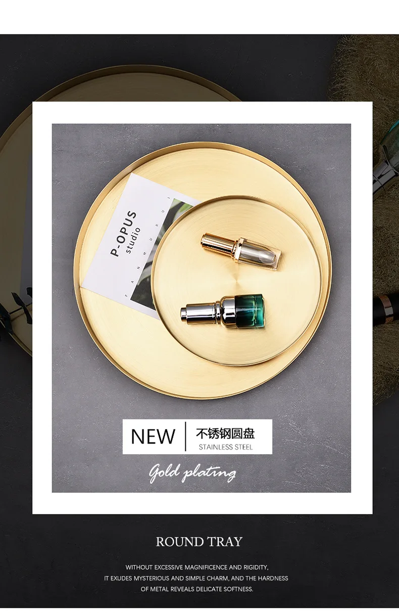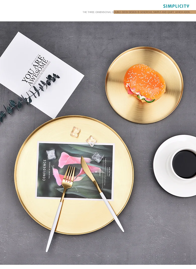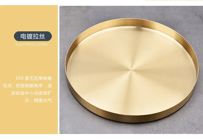 Поднос из нержавеющей стали золотистого цвета с круглыми прямыми краями в стиле - купить