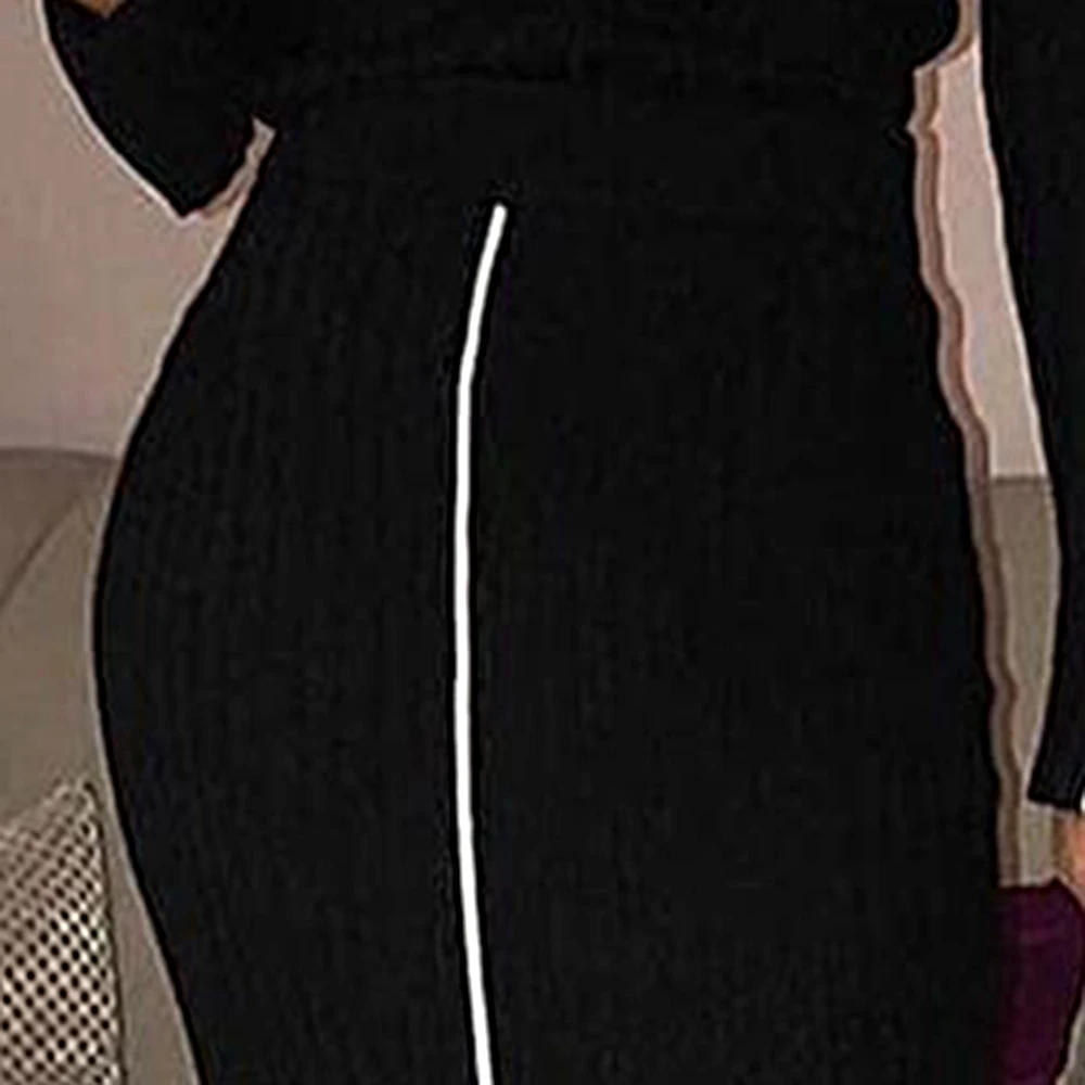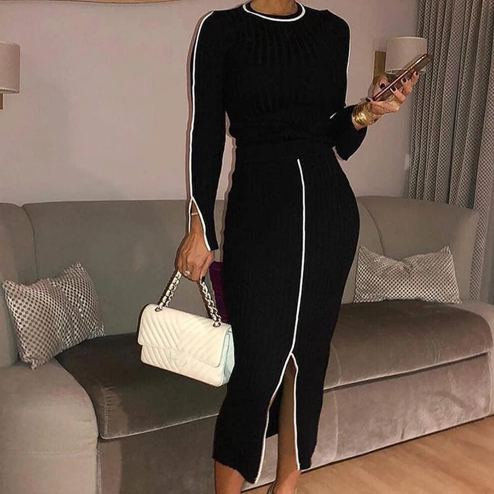 Женское элегантное платье с длинным рукавом и разрезом снизу, Осеннее Повседневное платье из 2 частей, Стильная современная женская одежда черного цвета, уличная одежда