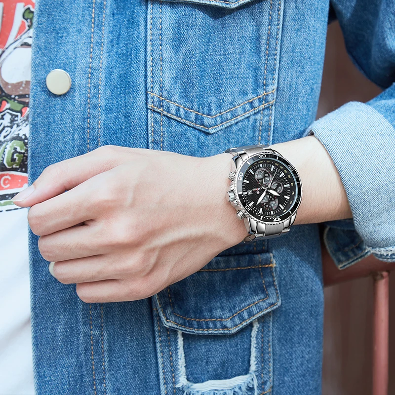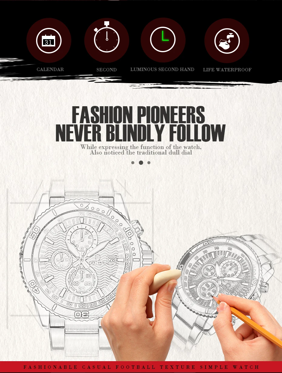 -Автоматическая Дата, отображение недели, водонепроницаемость, задний светильник, ударопрочность, секундомер, будильник