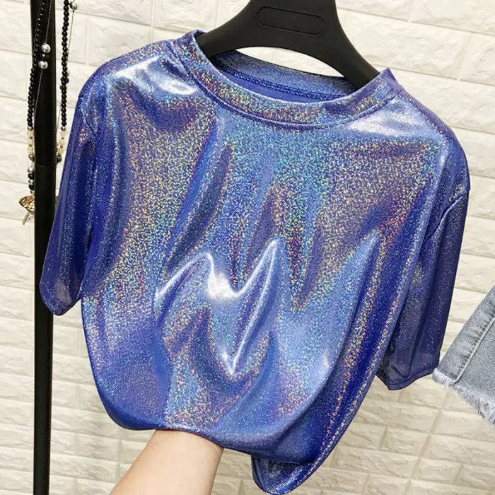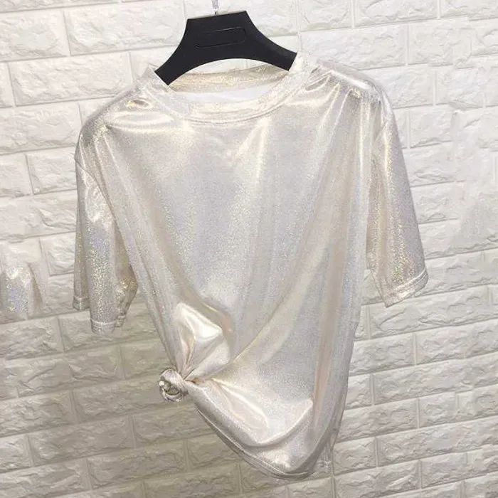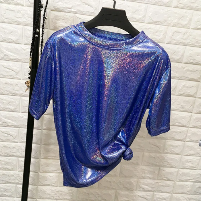 2019 Летние Стильные яркие шелковые женские топы в стиле ретро блестящие свободные - купить