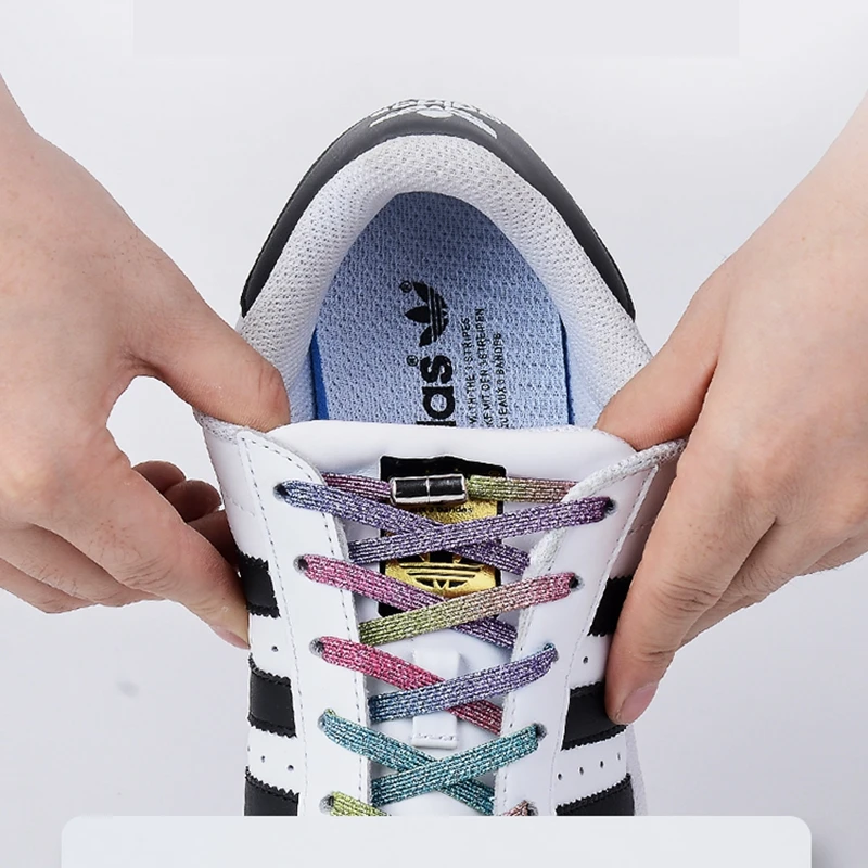 Разноцветные эластичные шнурки для обуви круглый металлический замок удобные - купить