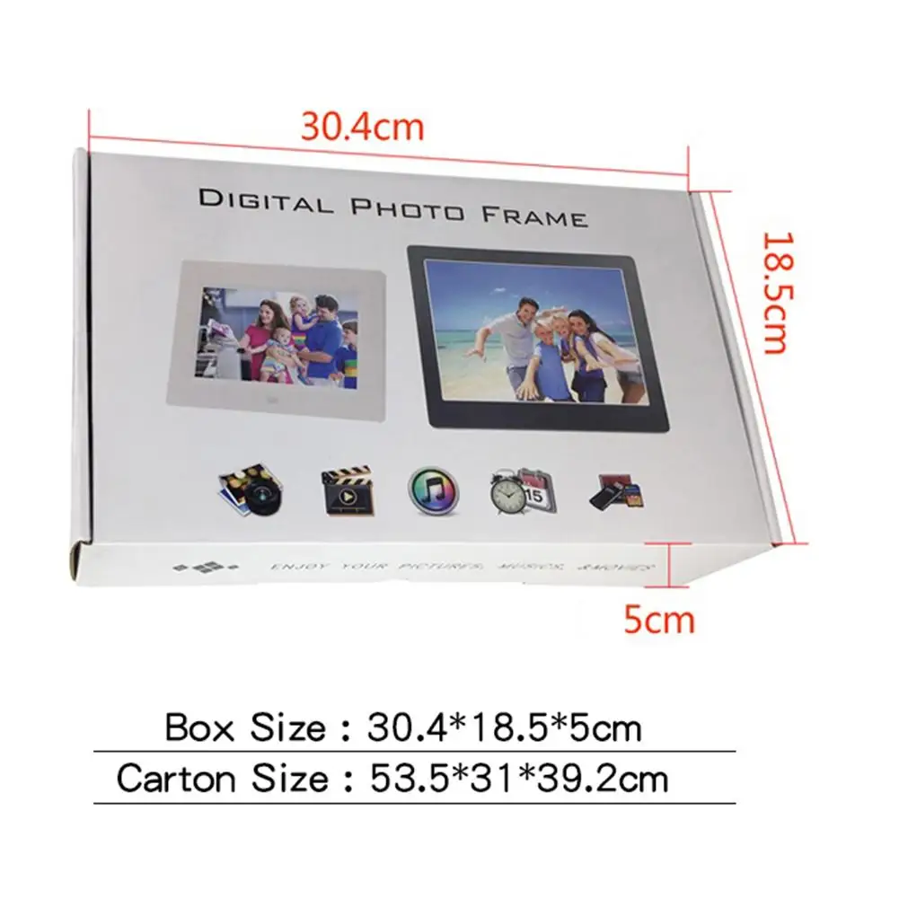 4. Управление двойным режимом: Кнопка корпуса цифровой фоторамки + инфракрасный пульт дистанционного управления, управление двойным режимом, простота в эксплуатации. Время включения или выключения может быть установлено в системе для удовлетворения ваших потребностей.