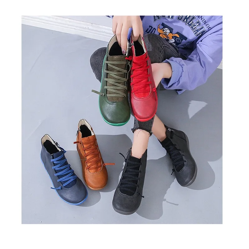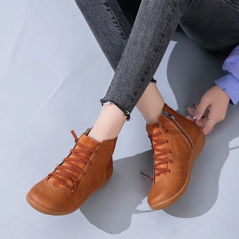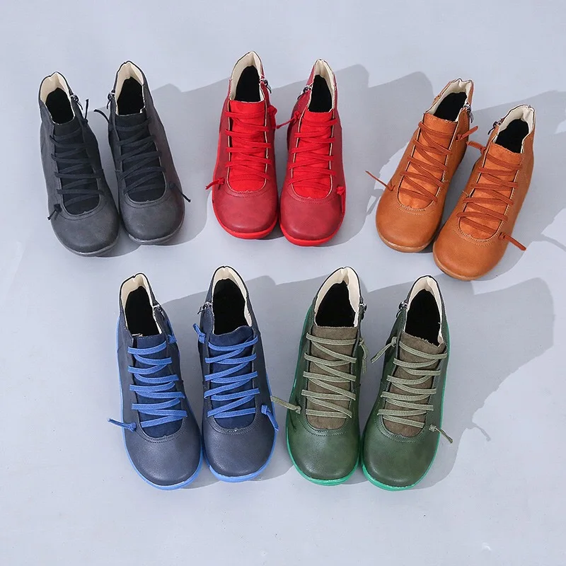 Купить Повседневные ботильоны для женщин на молнии с перекрестными ремешками Винтажные
