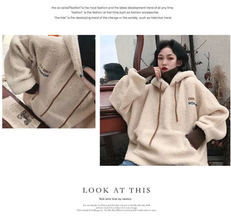 Толстовка Женская зимняя с капюшоном и бархатной подкладкой одежда - купить