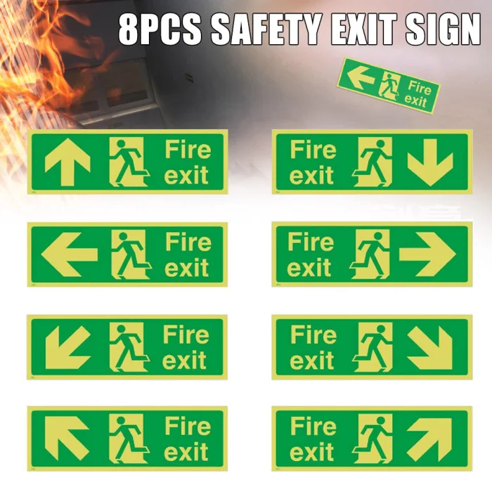 Купить 8 шт Фотолюминесцентные пожарные вывески 36x14 см пластиковые стрелы все