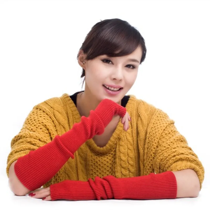 Отзывы о Женские зимние длинные кашемировые перчатки без пальцев однотонные теплые