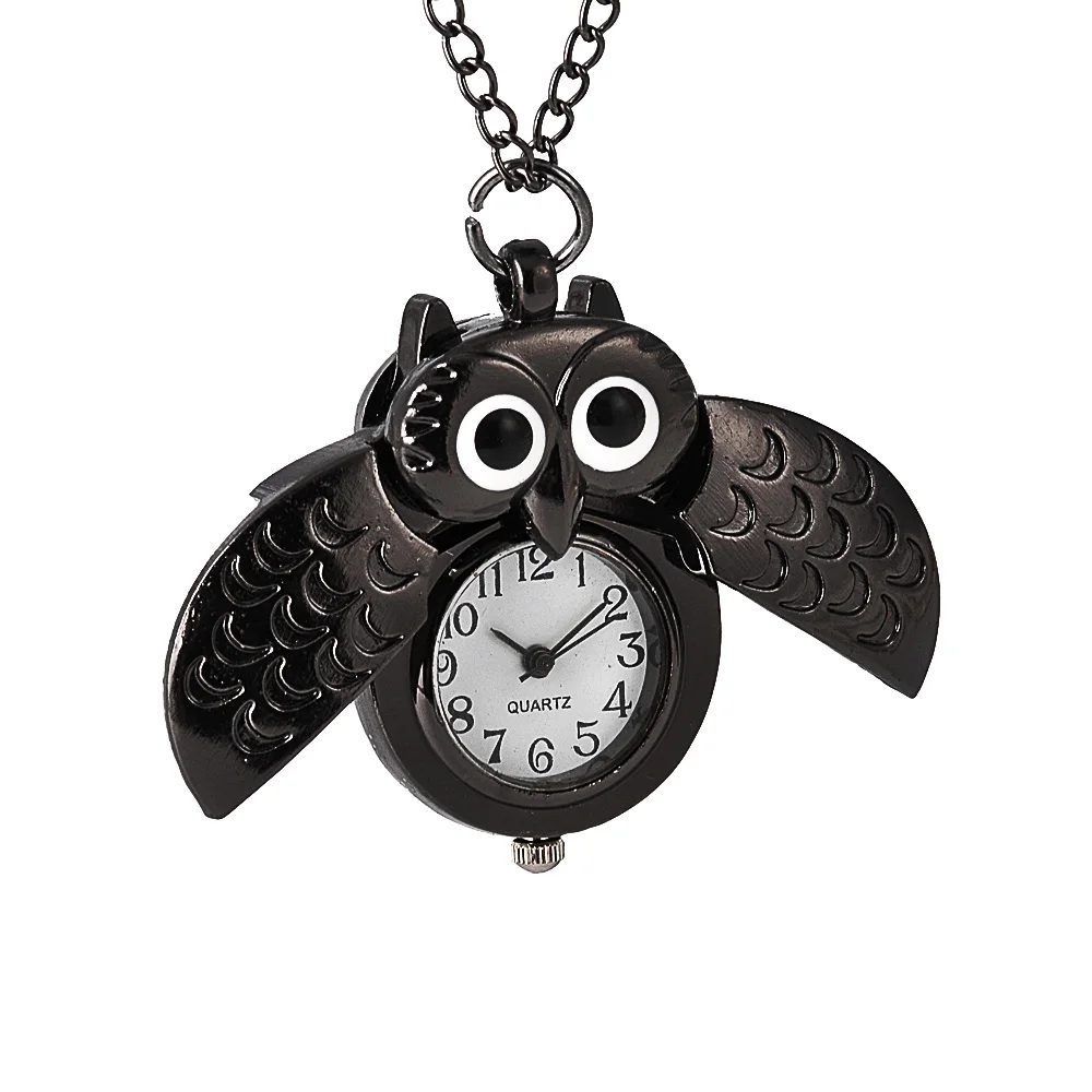 Купить Новые модные карманные часы с черными крыльями совы открытые индивидуальные