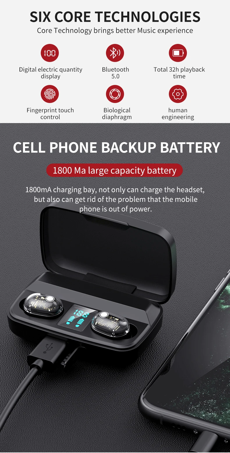 TWS Bluetooth наушники настоящие беспроводные наушники мини водонепроницаемые наушники с внешним аккумулятором беспроводные Bluetooth наушники