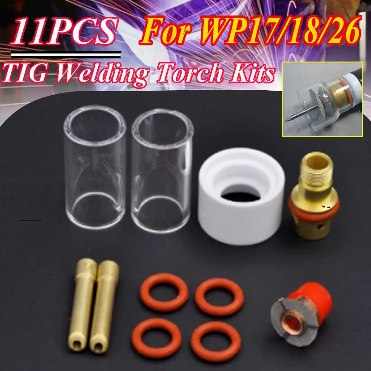 11 шт. TIG сварочный фонарь из стекловолокна с газовыми линзами стакан пирекс набор - купить