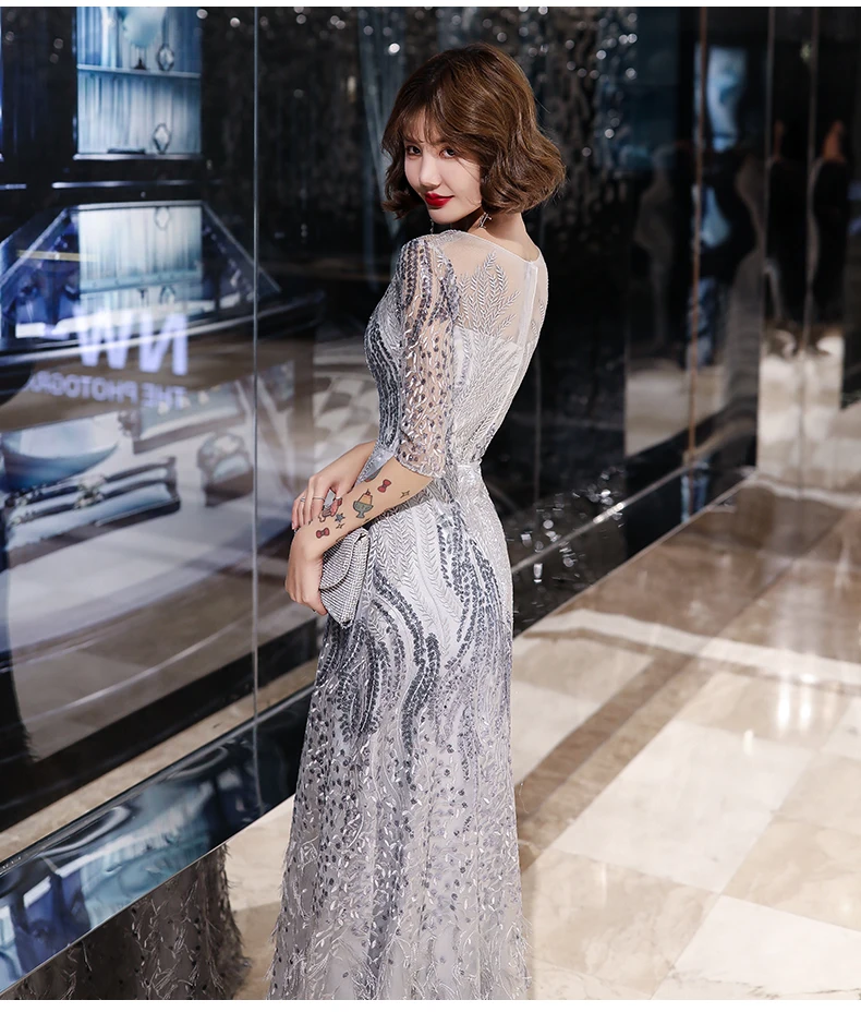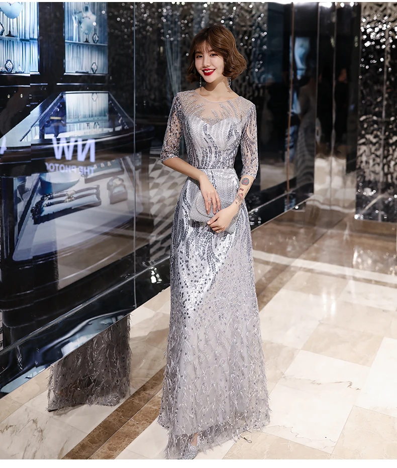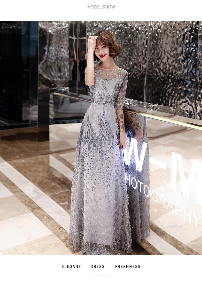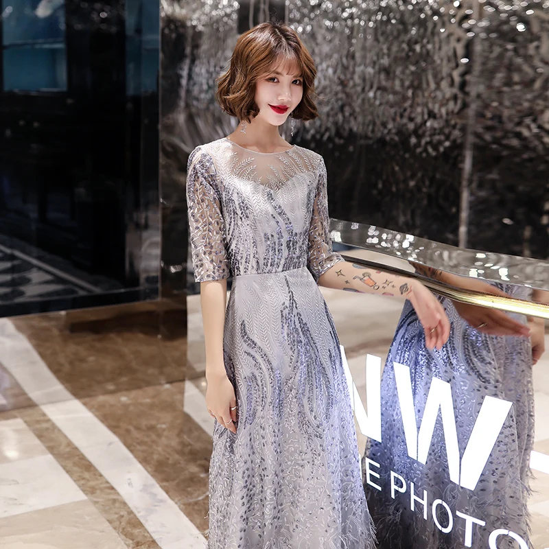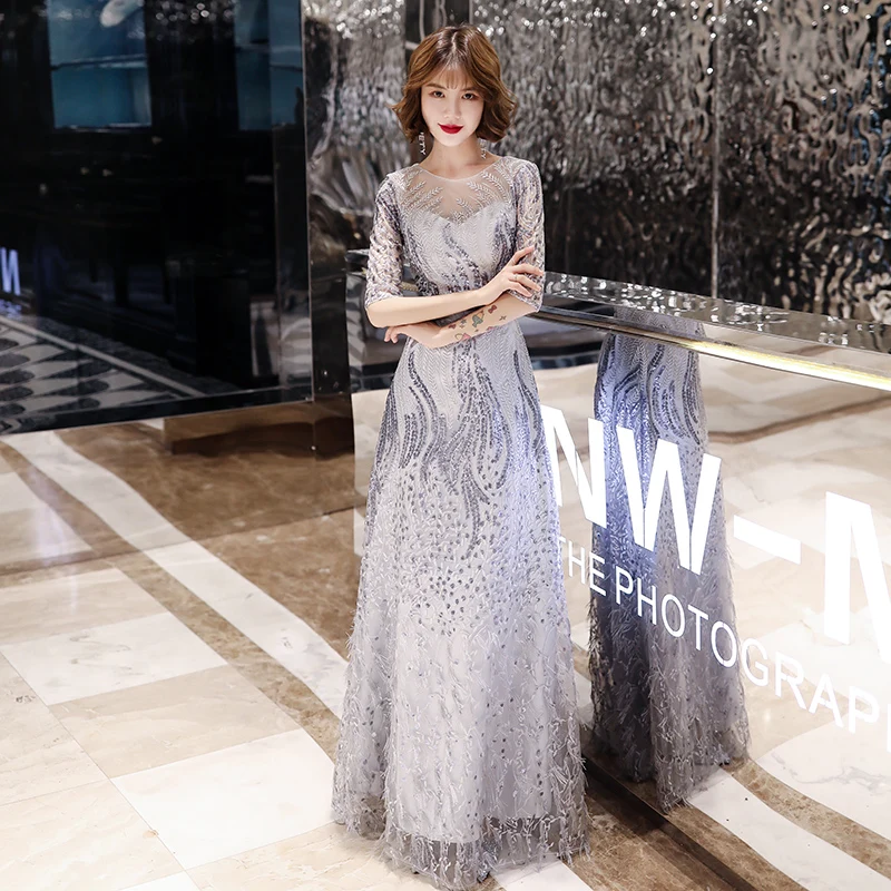 Новинка 2020 Стильные серые длинные вечерние платья AE697 кружевные официальные с - купить