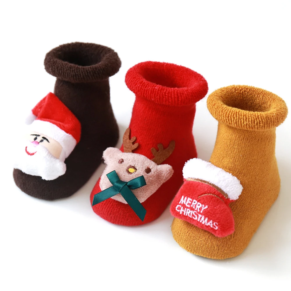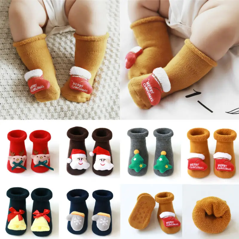 Купить В 2020 году новые От 0 до 3 лет милые детские рождественские чулки носки-тапочки с