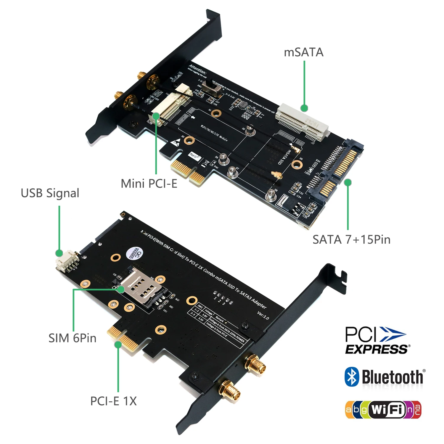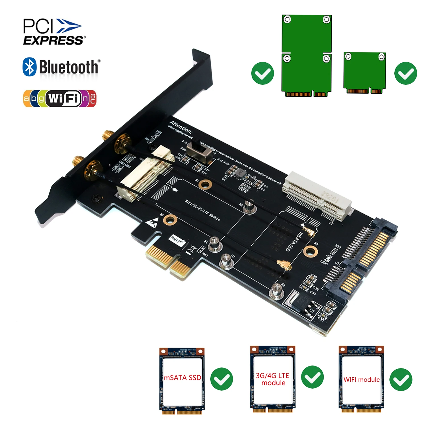 2. Supports all of Mini-Cards such as 3G, CDMA, WLAN, WWLAN, LTE, WiFi, Mini Card to desktop PC.