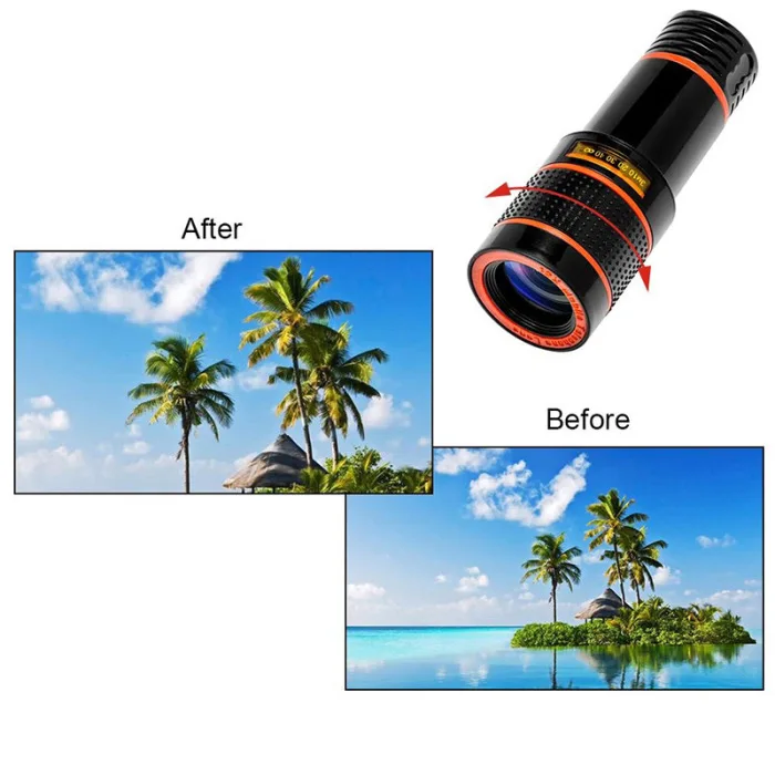 1.Телескоп & Монокуляр функция: Благодаря высококлассному стеклу и большой функции масштабирования объектив 12X может также использоваться в качестве телескопа или монокуляра для более четкого просмотра удаленных объектов, пейзажей, игр и концертов. Возьмите этот объектив и наслаждайтесь моментом.