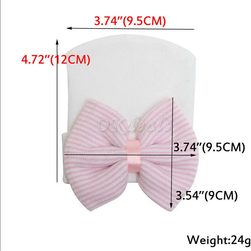 Шапочка в полоску для новорожденных и маленьких девочек; Удобная Шапочка с бантом для младенцев Состояние: абсолютно новый без этикеток Цвет: 8 цветов Вес: 24 г Материал: безопасная медицинская пряжа для детей Шляпа Размеры: 4,72 ''/12 см (Длина); 3,74''/9,5 см (Ширина) Бантом Размеры: 3,74 ''/10 см * 3,54''/9 см Подходит для детей 0-3 месяцев Посылка: OPP упаковка Ваша маленькая девочка будет хитом питомника в ее очаровательной большой бант шапочка для больницы! Эти шляпы изготовлены из акрила и толще, чем обычные больничные шляпы. Они очень эластичные и плотно прилегают к голове ребенка.