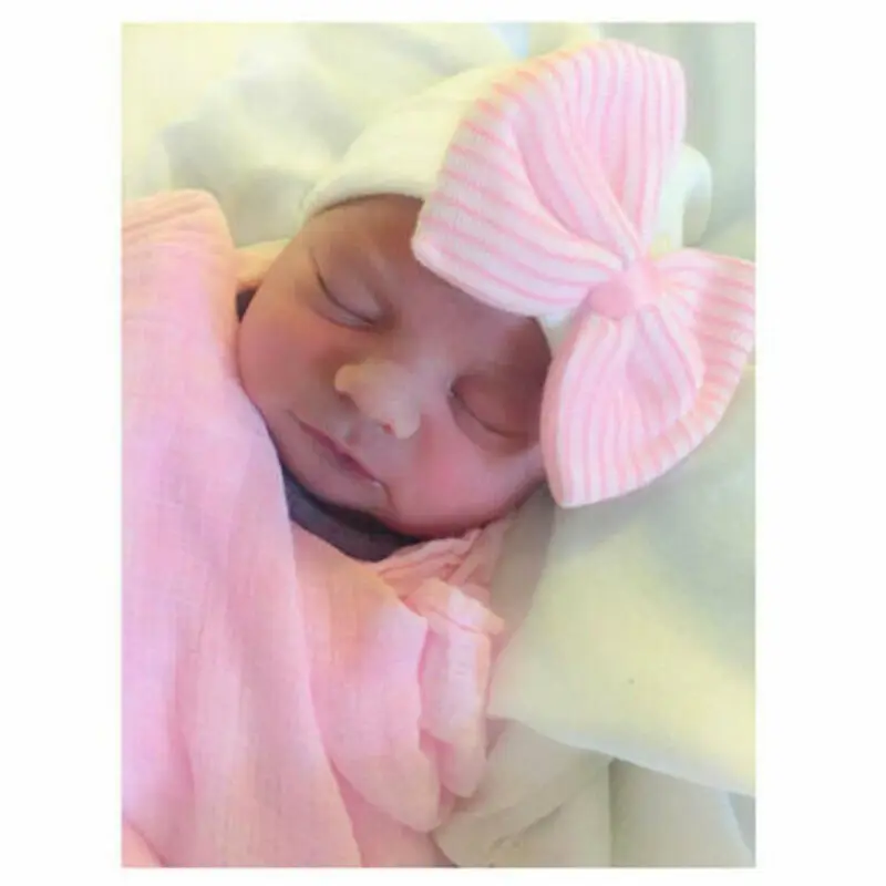Отзывы о Новинка 2020 милая детская шапочка для новорожденных удобная в полоску с бантом