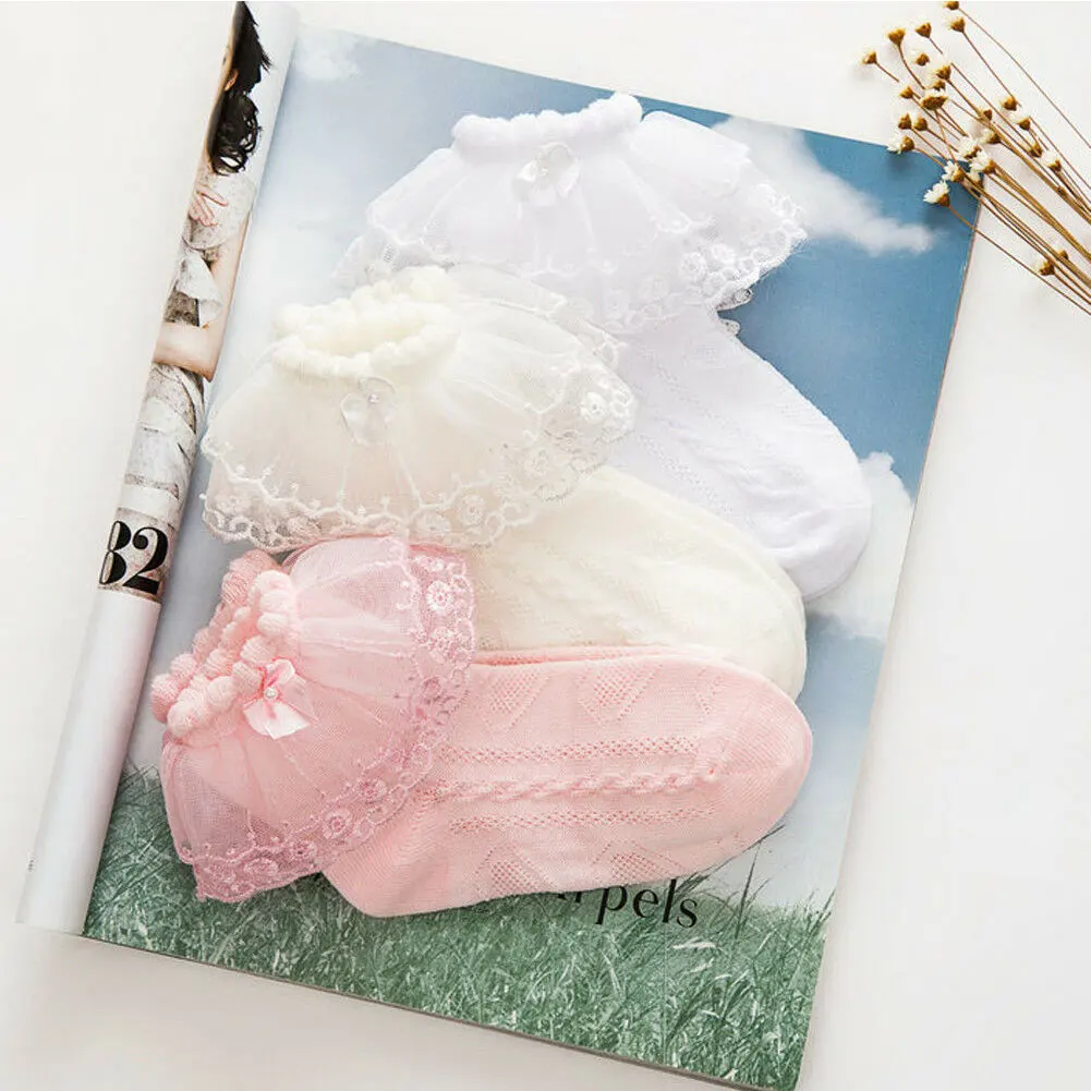 Купить Милые детские кружевные носки до щиколотки с оборками для маленьких девочек