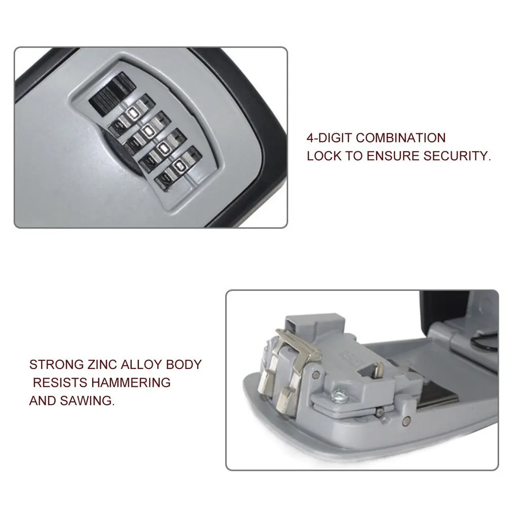 Key Safe Box 4 Digit Combination Password Keys Box Key Storage Organizer Case Wall Mounted Home Security Lock Tool Metal Key Box