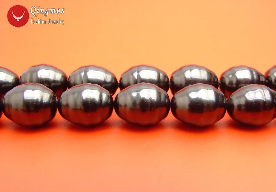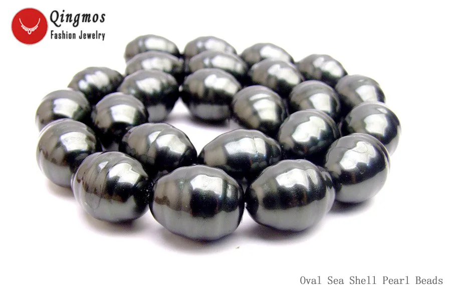 Qingmos блеск 13*16 мм овальные черные морские жемчужные бусины для самостоятельного - купить