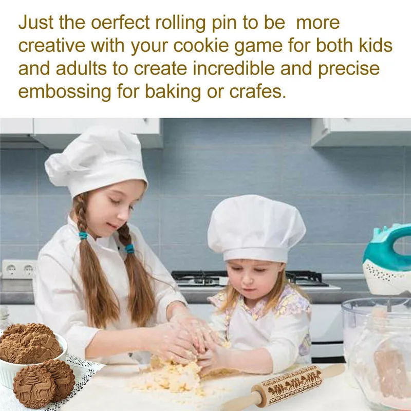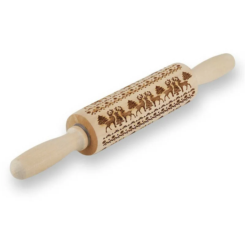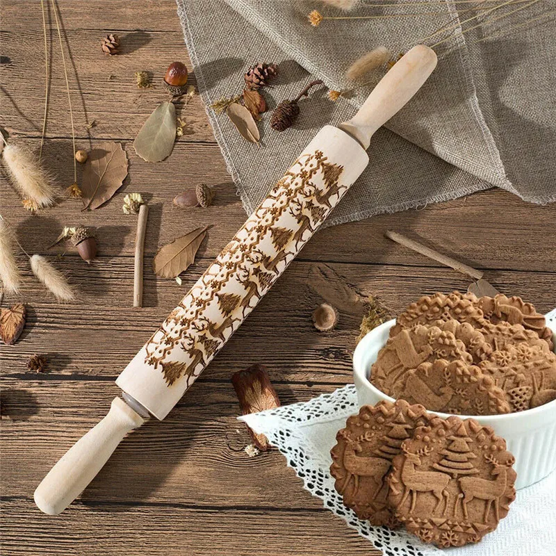 Купить Christmas moose Rolling pin Xmas Wooden Embossing DIY baking tool Creative printing pastry Cookies Roller pins | Дом и сад