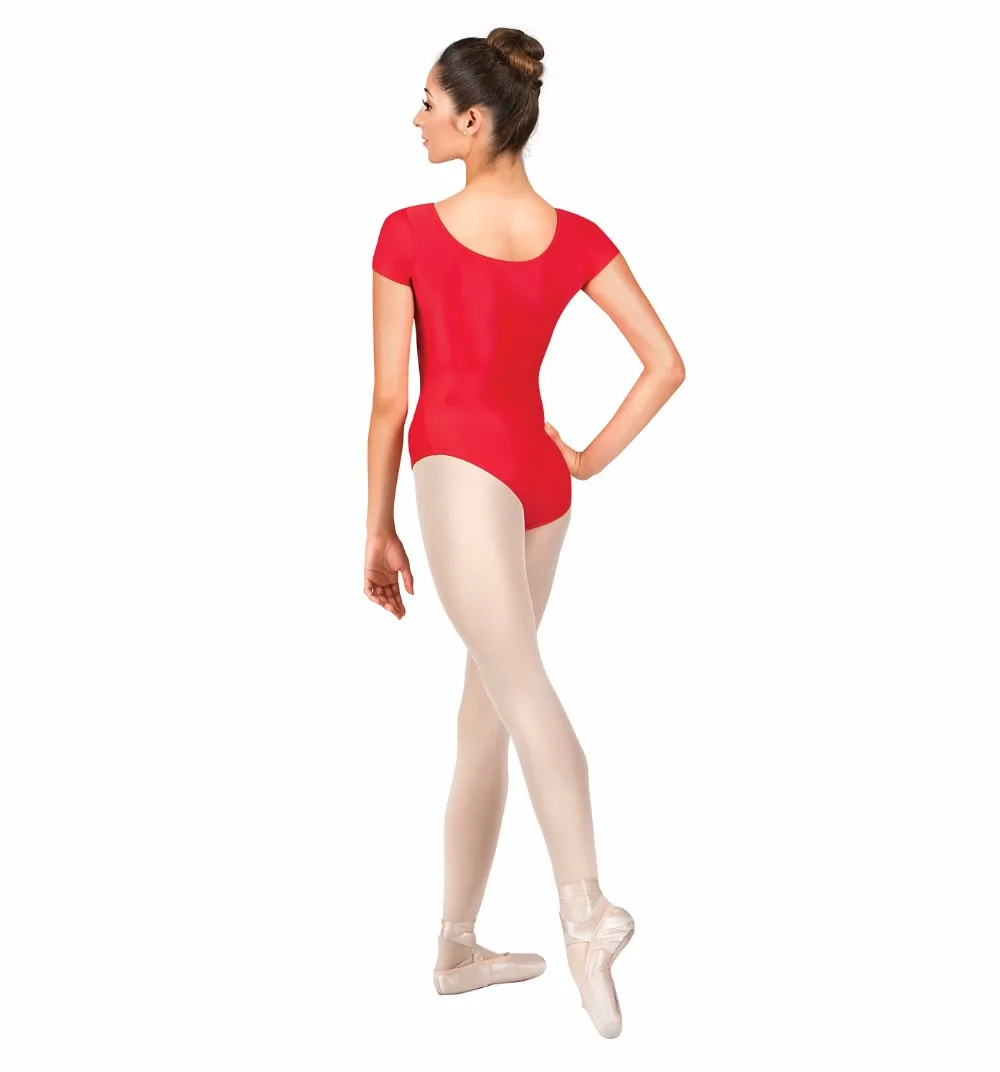 Women's Team Basic Short Sleeve Leotard Nylon Adults Scoop Neck Work Out Leotards Bodysuits Dance Costuming Tops Girls
