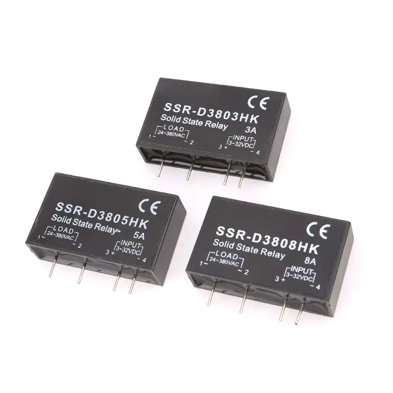 Твердотельное реле PCB, 24-380VAC нагрузки и 3-32VDC вход, оснащен несколькими контактами.