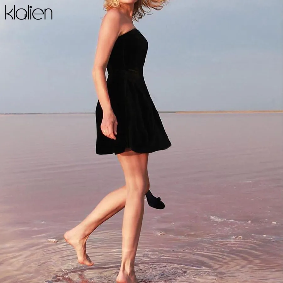 Klanien женское сексуальное ретро черное прозрачное платье без бретелек рукавов - купить