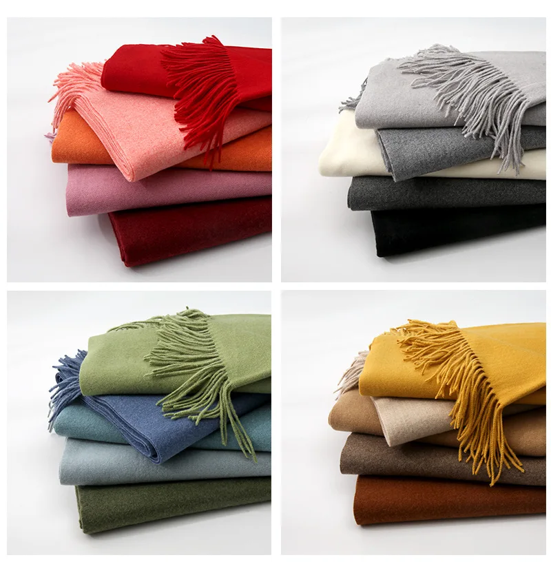 Отзывы о Женский зимний шерстяной шарф теплый модный однотонный платок с кисточками